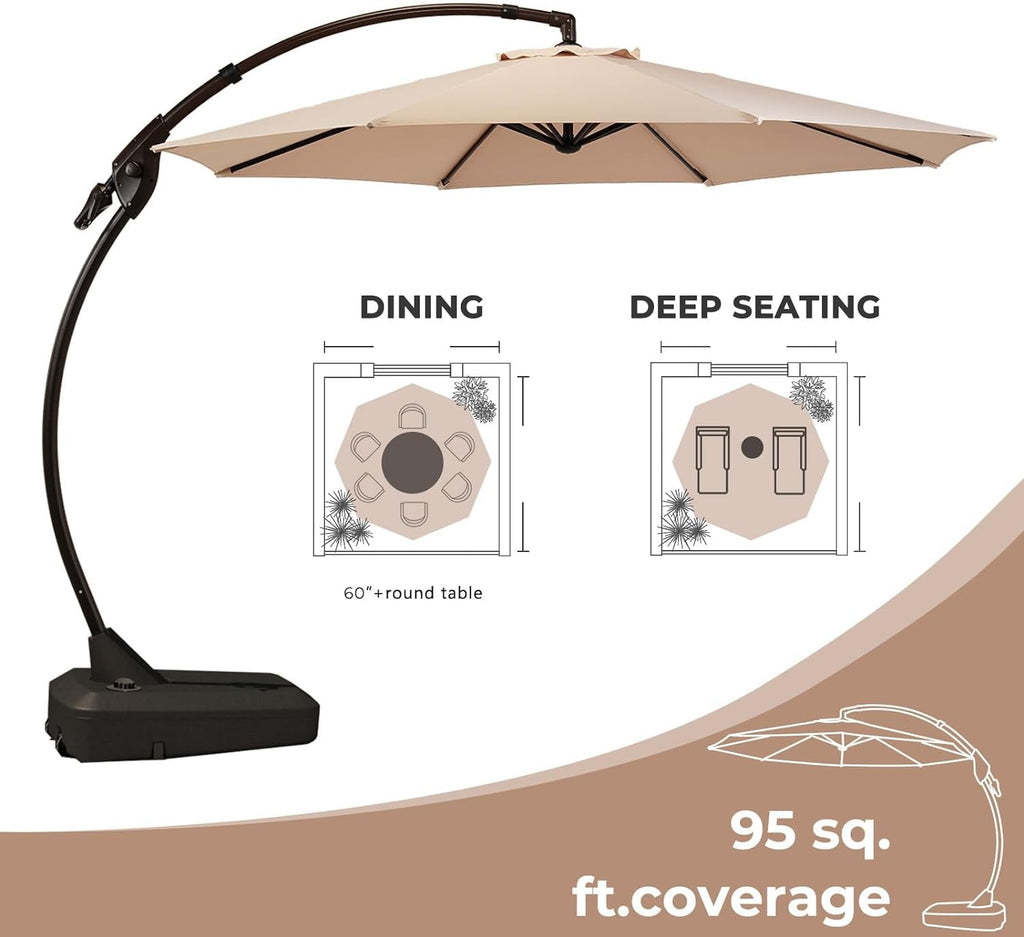 - Generous coverage — 11 ft cantilever offset umbrella delivers up to 95 sq ft of inviting shade.