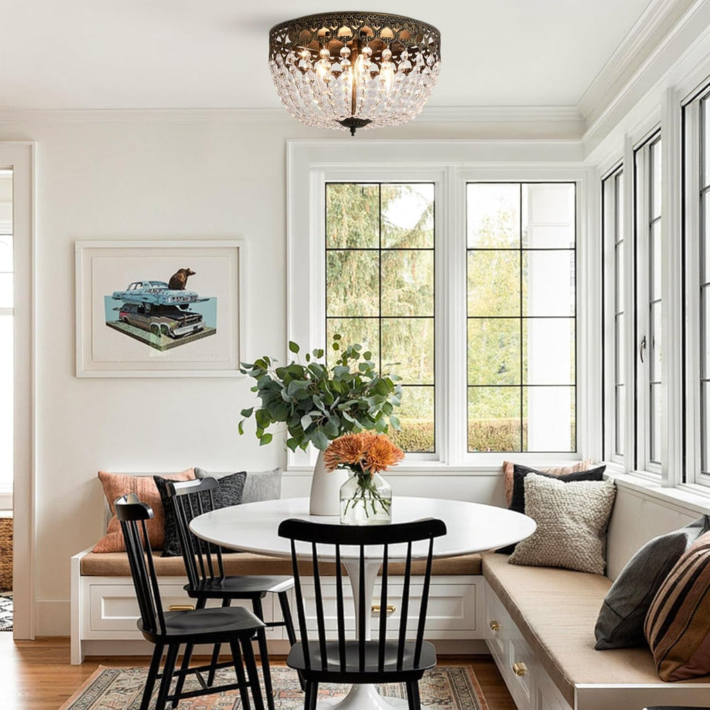 Live brighter, feel more at home. The warm, crystal-soft glow enhances everyday moments and special gatherings alike, making dining rooms feel more intimate, bedrooms cozier, and entryways more inviting. With its vintage-inspired yet contemporary finish, this 15" bronze crystal flush mount is a versatile centerpiece that complements farmhouse, transitional, and classic decor styles for years to come.
