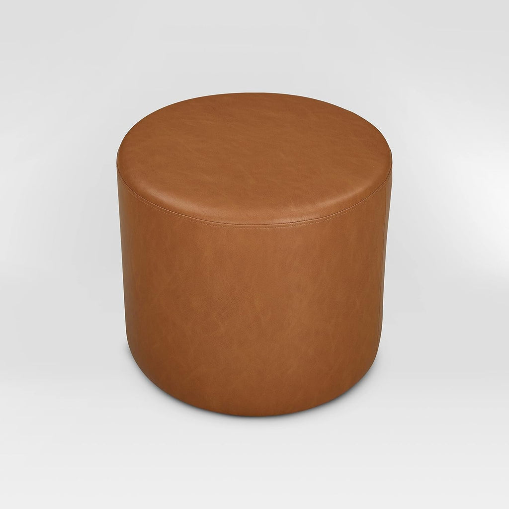 Elevate comfort and style with a round caramel faux leather ottoman that doubles as a footrest and cozy seat. This timeless piece blends luxe upholstery with sturdy craftsmanship to anchor any room—from living areas to bedrooms and home offices.