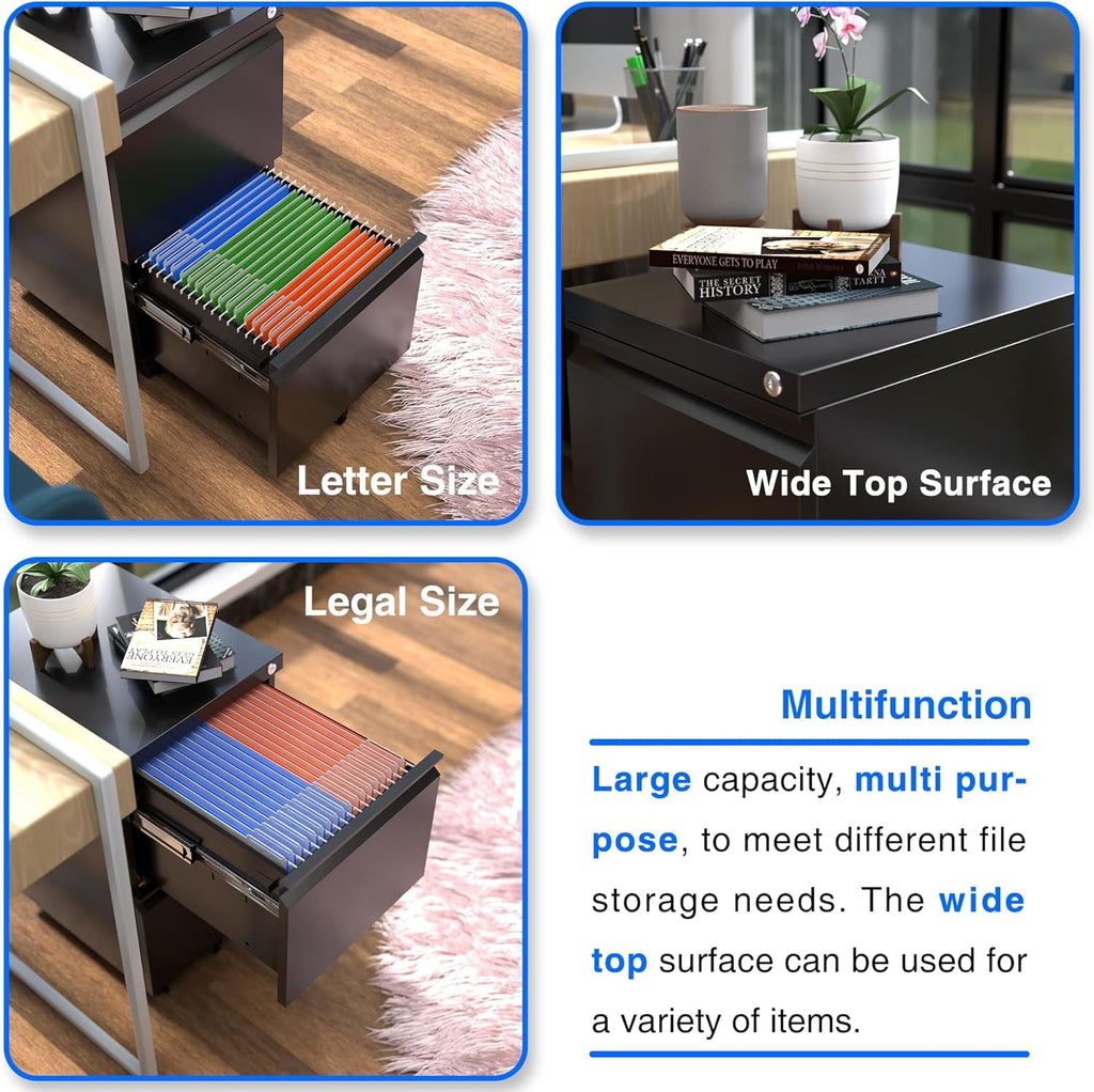 Secure, space-saving under-desk storage that moves with you. The 2 Drawer Vertical File Cabinet with Lock in black is a compact, mobile metal filing solution designed to tame clutter while keeping important documents safe and within reach.