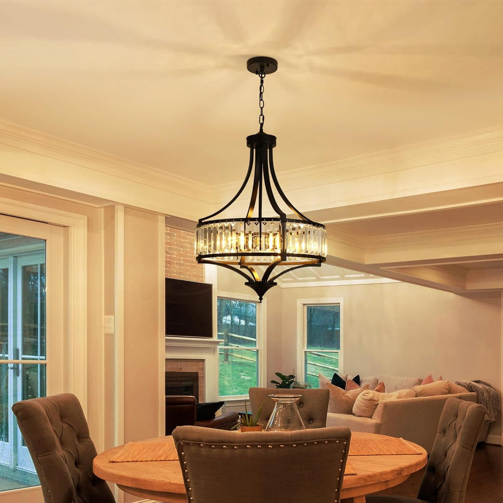 Transform your dining room and living spaces with a 20-inch black crystal farmhouse chandelier that blends modern elegance with vintage sparkle, delivering a warm, inviting glow to every moment at home.
