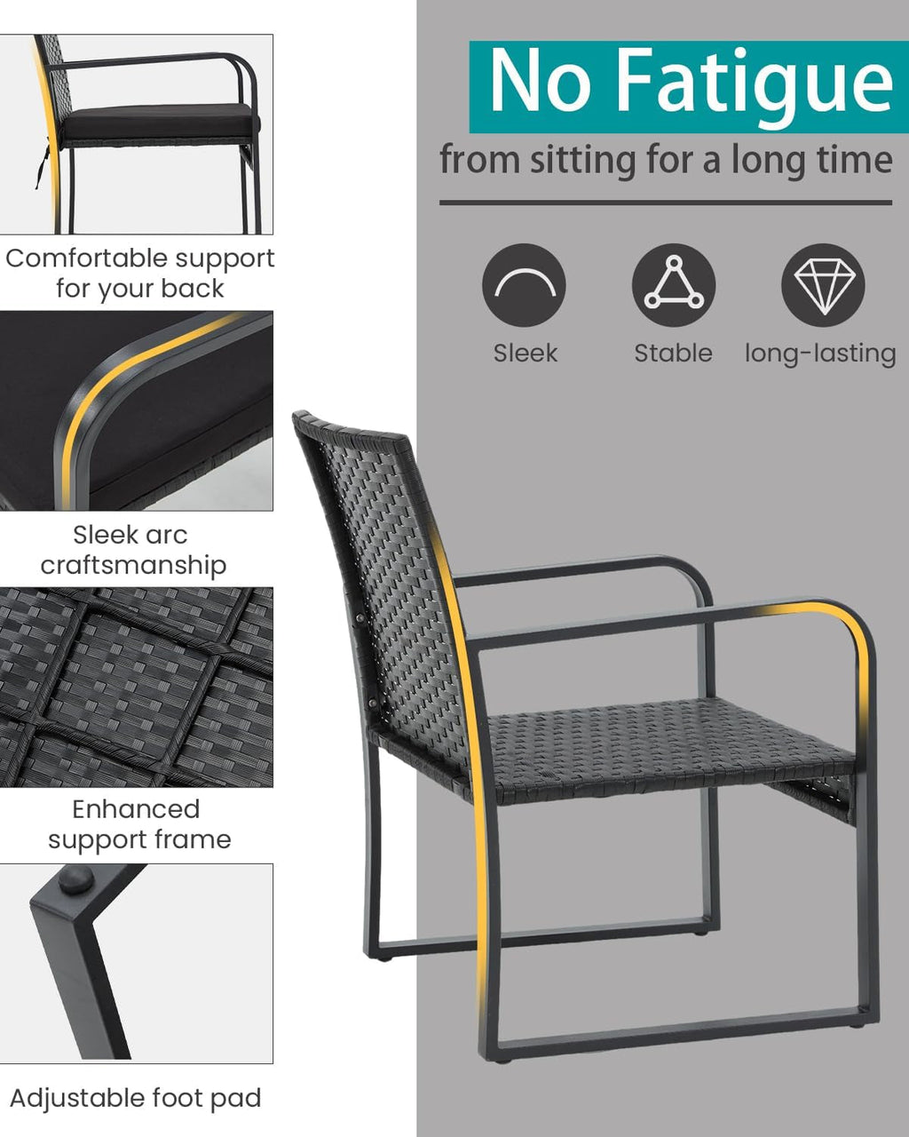 - Sturdy and Durable Construction: Powder-coated steel frame with handwoven PE rattan delivers rust-proof, weather-resistant performance. Each chair supports up to 250 lbs for a stable, reliable seat.
