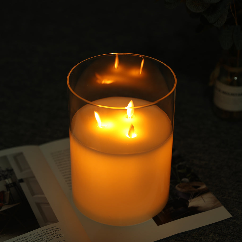 Standing tall at 6 inches, this LED candles is encased in pristine glass, allowing the three wicks' dance to be witnessed from every angle. With each wick emulating the mesmerizing movements of a real flame, the candle promises an ambiance that’s both heartwarming and luxurious.