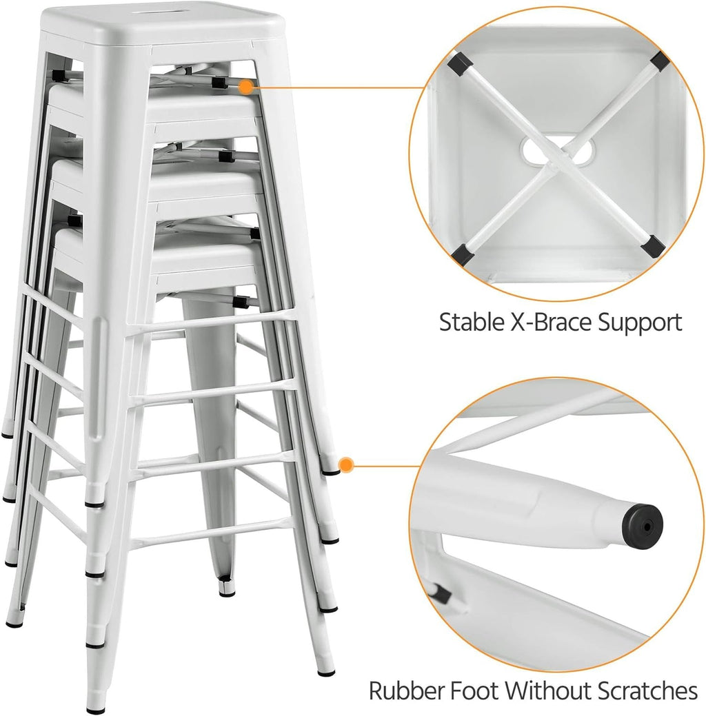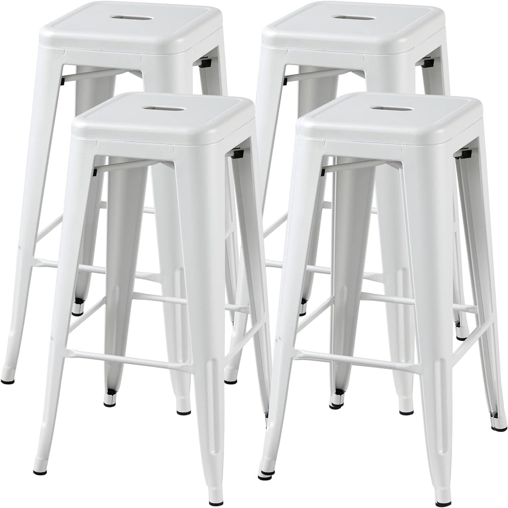 Crafted from cold-rolled steel with a water- and rust-resistant powder coat, these stools stand up to daily use. The matte, scratch-resistant finish keeps the paint from peeling and looks great year after year. The set includes four stools in a pristine white finish, each supporting up to 330 lb (150 kg).