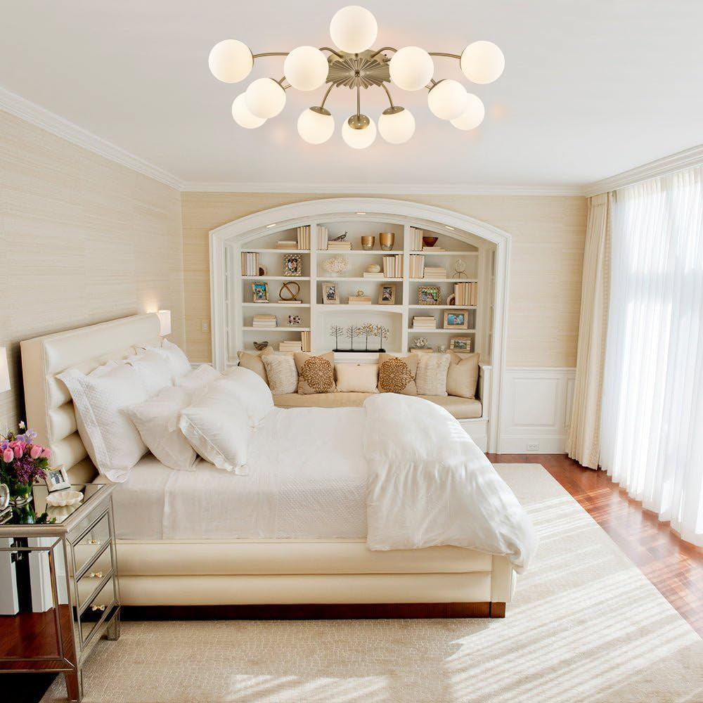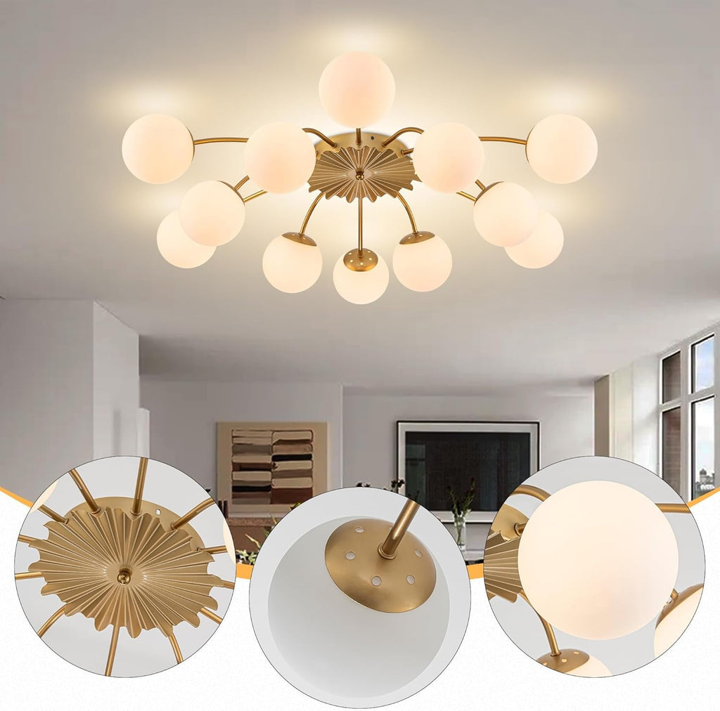 Make a bold, artful statement with a 38-inch Gold Sputnik chandelier featuring milky opal glass globes. This mid-century modern semi-flush ceiling light blends sculptural elegance with practical brilliance, turning light into a centerpiece you’ll admire every day.