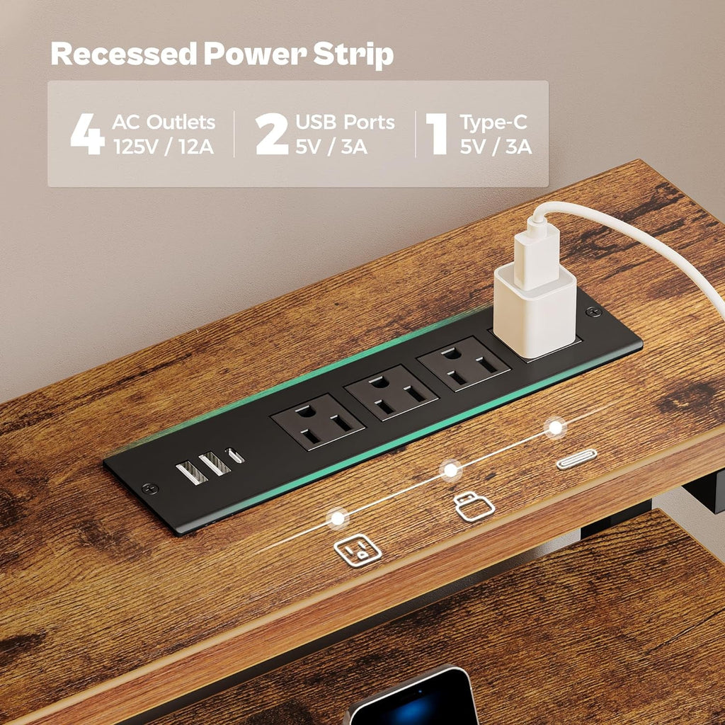 Turn your workspace into a vibrant gaming and work hub with a 47-inch Rustic Brown Gaming Desk featuring immersive RGB lighting, built-in power outlets, and smart storage. Designed for comfort, organization, and long-term durability, it blends style with practical function for home offices, study corners, and gaming setups.
