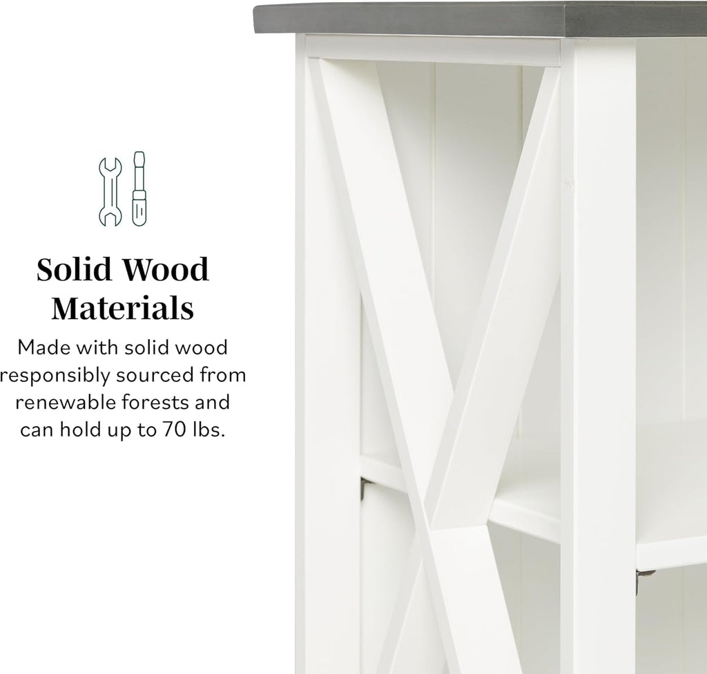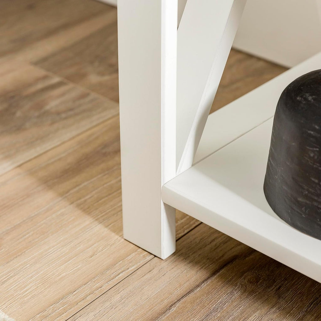 Envision a welcoming space where your books, plants, family photos, and everyday essentials live neatly in view. The durable wood construction delivers lasting beauty, and the timeless white finish with farmhouse details seamlessly complements a range of decor—from modern to traditional—so your space feels warm, organized, and inviting.