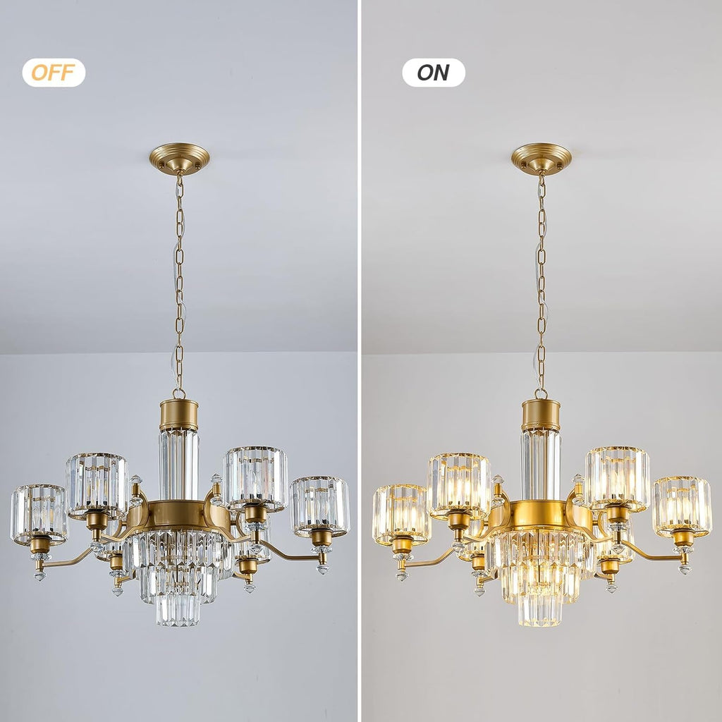 The combination of metal structure and crystal droplets delivers both durability and undeniable style. The clear, refractive crystals pour light from seven sources, bathing the room in a radiant, welcoming glow that feels luxe yet inviting — the kind of ambiance that makes guests slow down and linger.