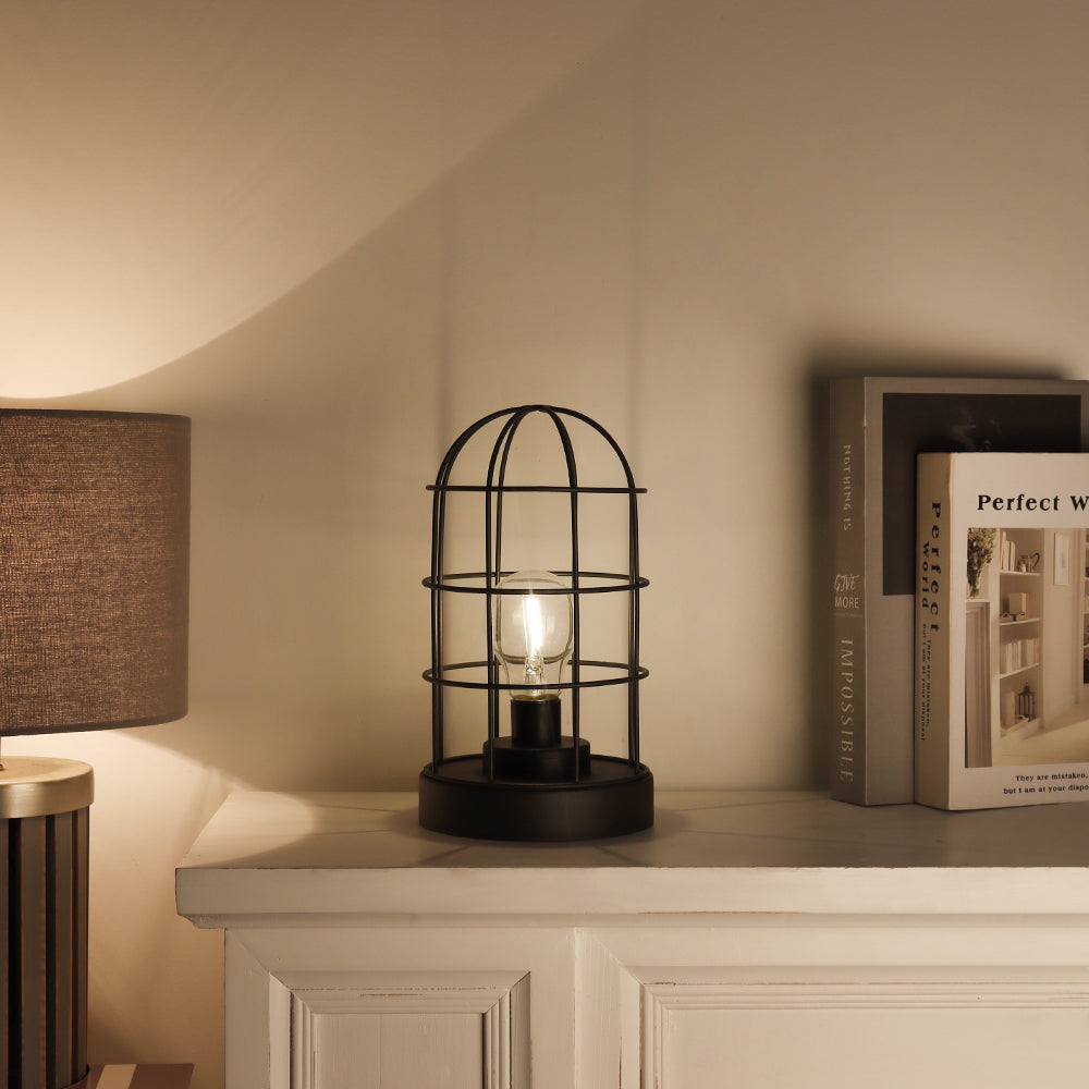 The sophisticated metal cage design, presented in a classic black, imparts a modern yet timeless appeal to this lamp, enabling it to seamlessly integrate into a multitude of decor styles and infuse any space with a sense of contemporary elegance.