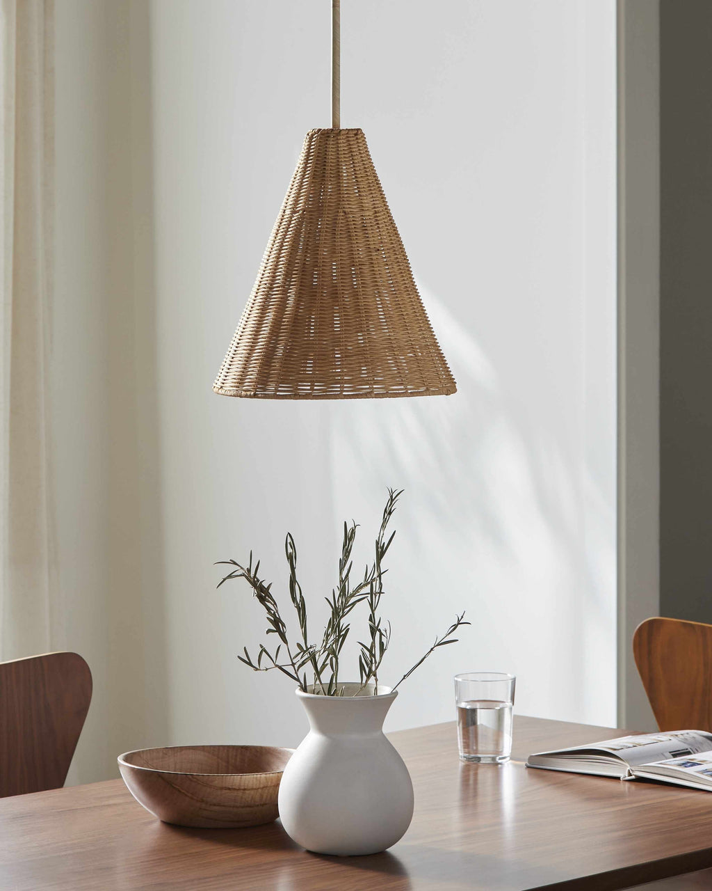 Material: Fixture: Rattan / Shade (Outside): Rattan / Shade (Inside): Metal |