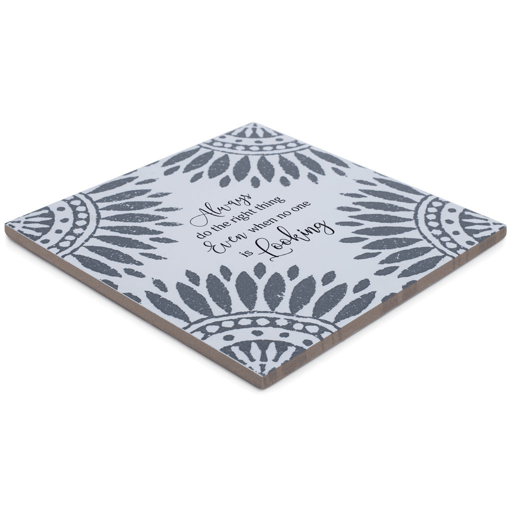 Introducing the Always Do Right Inspirational Ceramic Tile, a remarkable piece that serves as both a decorative item and a daily reminder of the importance of integrity. Measuring at a convenient 7.25 x 7.25 inches, this exquisite ceramic tile features a cream-color