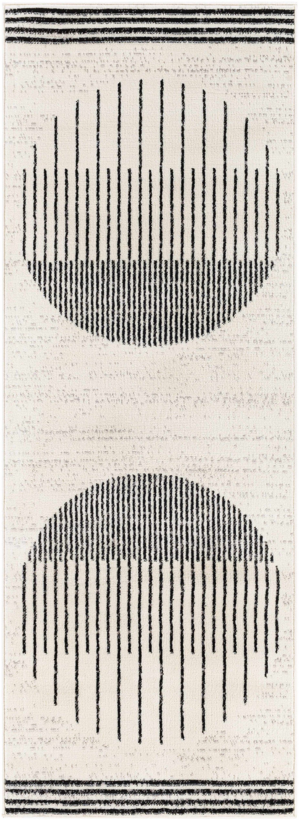 About: This abstract rug features a black and white striped pattern with a southwestern flair that is perfect for both contemporary and farmhouse decors. The construction is made to last with a non-shedding design that will stay looking great for years to come.