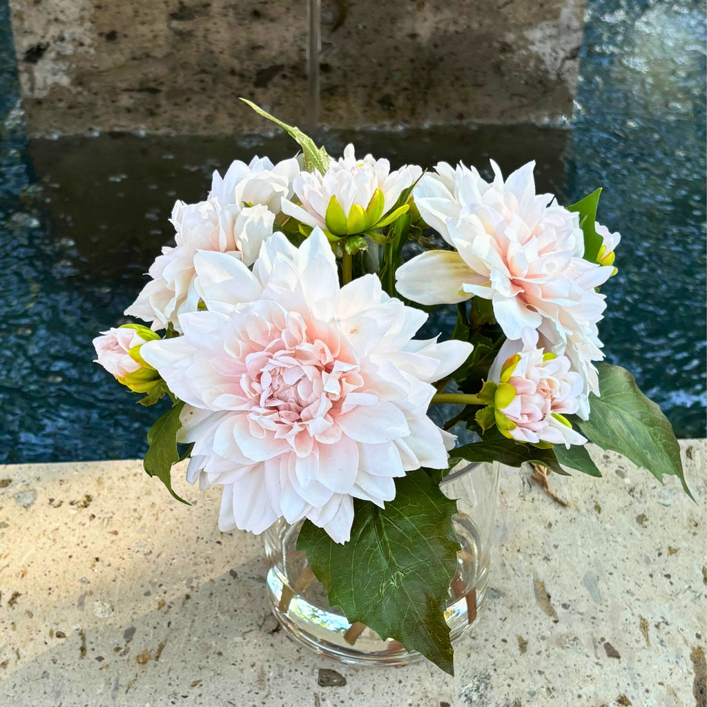Artificial Dahlia Flower Arrangement in Glass Vase