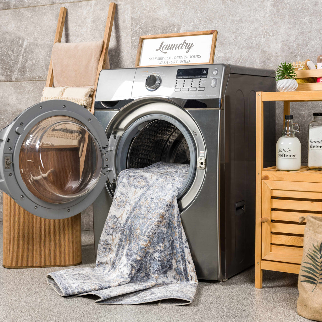About: The Blue Aurum Washable Area Rug showcases a stunning distressed medallion design, reminiscent of traditional Turkish craftsmanship. With a color palette of soothing blue, beige, and gray tones, this rug effortlessly combines classic elegance with a modern touch. Its Turkish-inspired patterns add character and timeless charm to any space, while its washable construction ensures both style and practicality. Perfect for living rooms, dining rooms, or entryways, the Blue Aurum rug brings a touch of vintage appeal and comfort to your home, while offering a soft, luxurious feel underfoot.