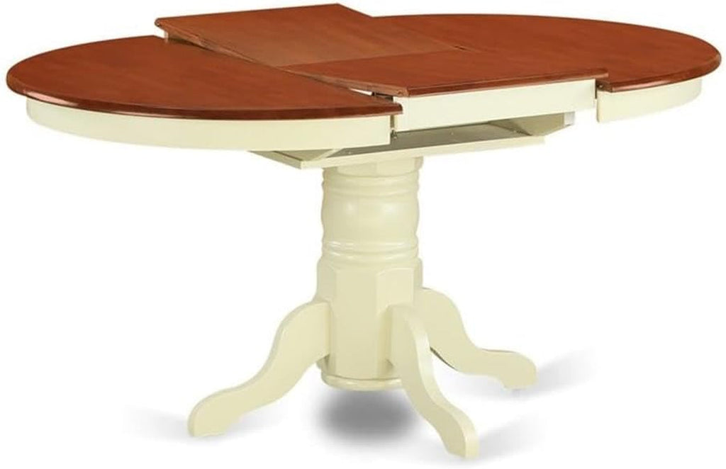 Crafted from premium Asian hardwood (rubberwood) with a rich Cherry tabletop and Buttermilk-finished pedestal legs, this table combines timeless style with modern resilience. The result is a sturdy, easy‑care surface that remains inviting from morning coffee to dinner parties.