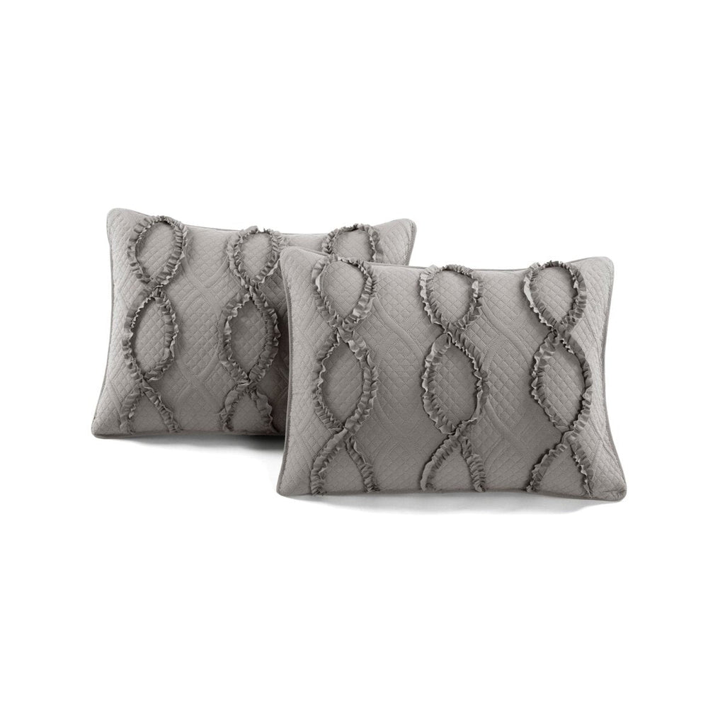 This Avon Textured Ruffle Quilt 3 Piece Set is available in both King and Full/Queen sizes in your choice of white, ivory, or dark gray.