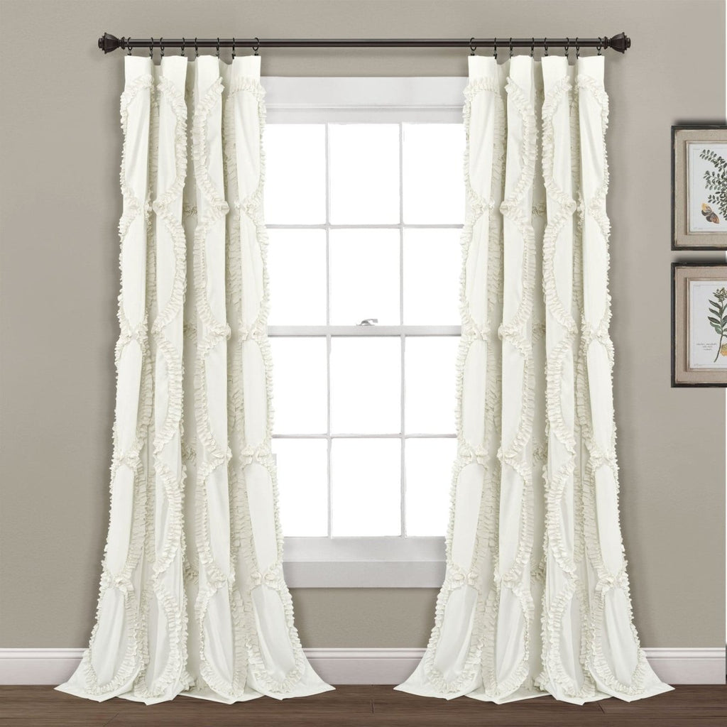 Our Avon Window Curtain showcases all-over ruffle embroidery pattern that creates a feminine look with three-dimensional texture. These curtains would make a statement in any room in the home. Just one look at the panel and you can easily see why this is a bestseller.