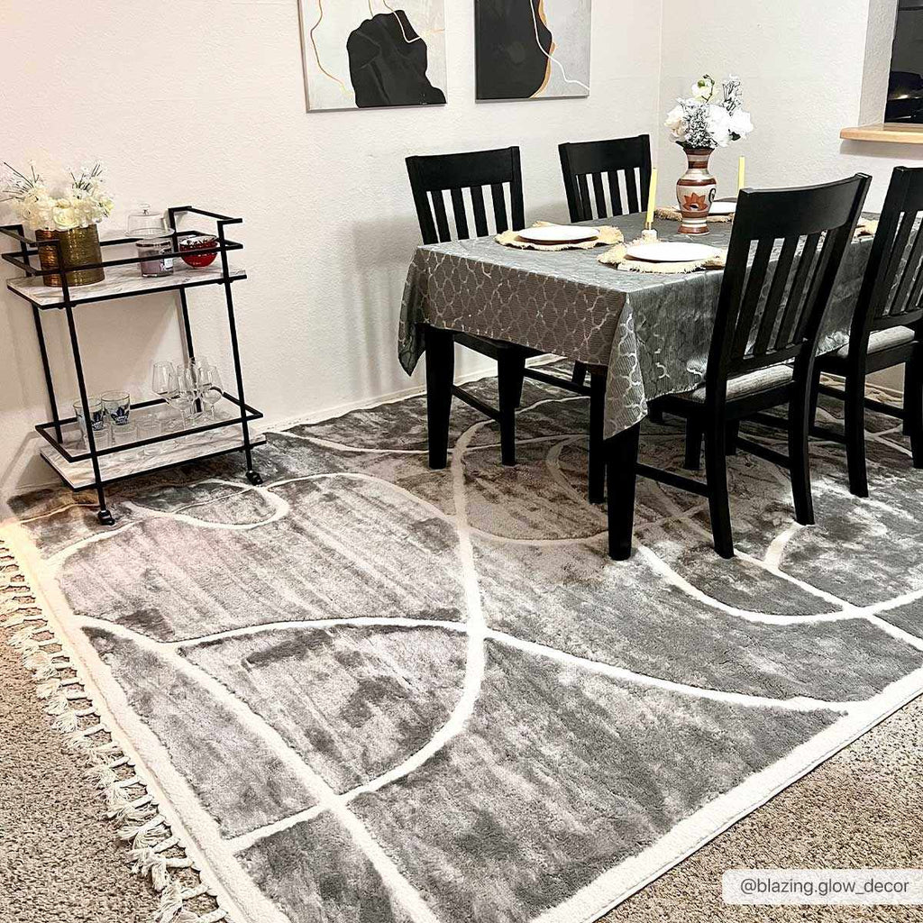 About: The Azana Gray Area Rug features clean, irregular white lines on a soft gray background, creating a modern and bold design. The high-low texture adds depth and comfort, making it perfect for any room where both style and coziness are a priority. With its elegant fringed edges, this rug blends seamlessly into contemporary interiors, offering a sophisticated touch to living rooms, bedrooms, or home offices. Its unique white line pattern and plush feel make the Azana Gray Area Rug an exceptional choice for those seeking modern elegance and comfort.