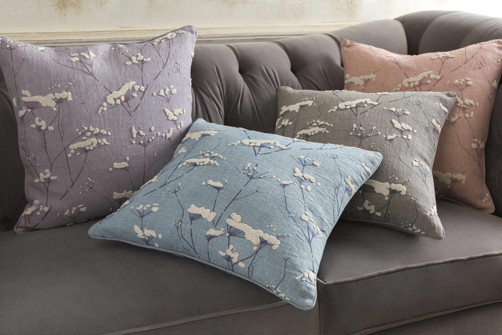 Backworth Mauve Floral Embroidered Throw Pillow