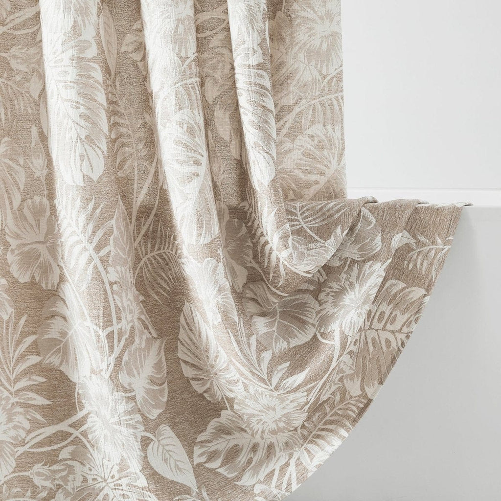 Bring resort vibes to your home with this palm-print tropical shower curtain. It's the perfect centerpiece to any boho or coastal styled bathroom. Made from a lightweight cotton fabric blend that adds texture and measures 72 inches wide by 72 inches long. Installation is easy with 12 button holes at the top to hang with shower hooks or rings. Pair this fabric shower curtain with a liner, sold separately. Machine washable for easy care.