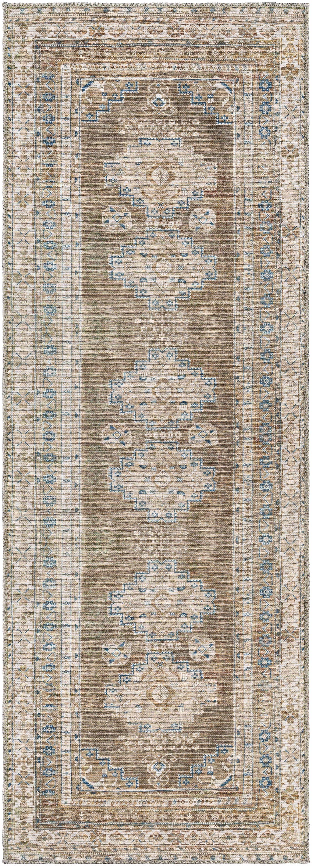 About: The Baltinglass Washable Area Rug features a striking Southwestern design, with rich brown tones dominating its aesthetic. This aged, vintage-inspired rug is perfect for high-traffic areas, offering both durability and style. The washable nature makes it an ideal choice for spaces that experience frequent use, like living rooms, hallways, and entryways. The warm brown hues combined with traditional Southwestern patterns bring a cozy, earthy charm to any room.