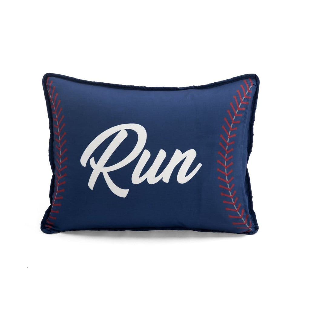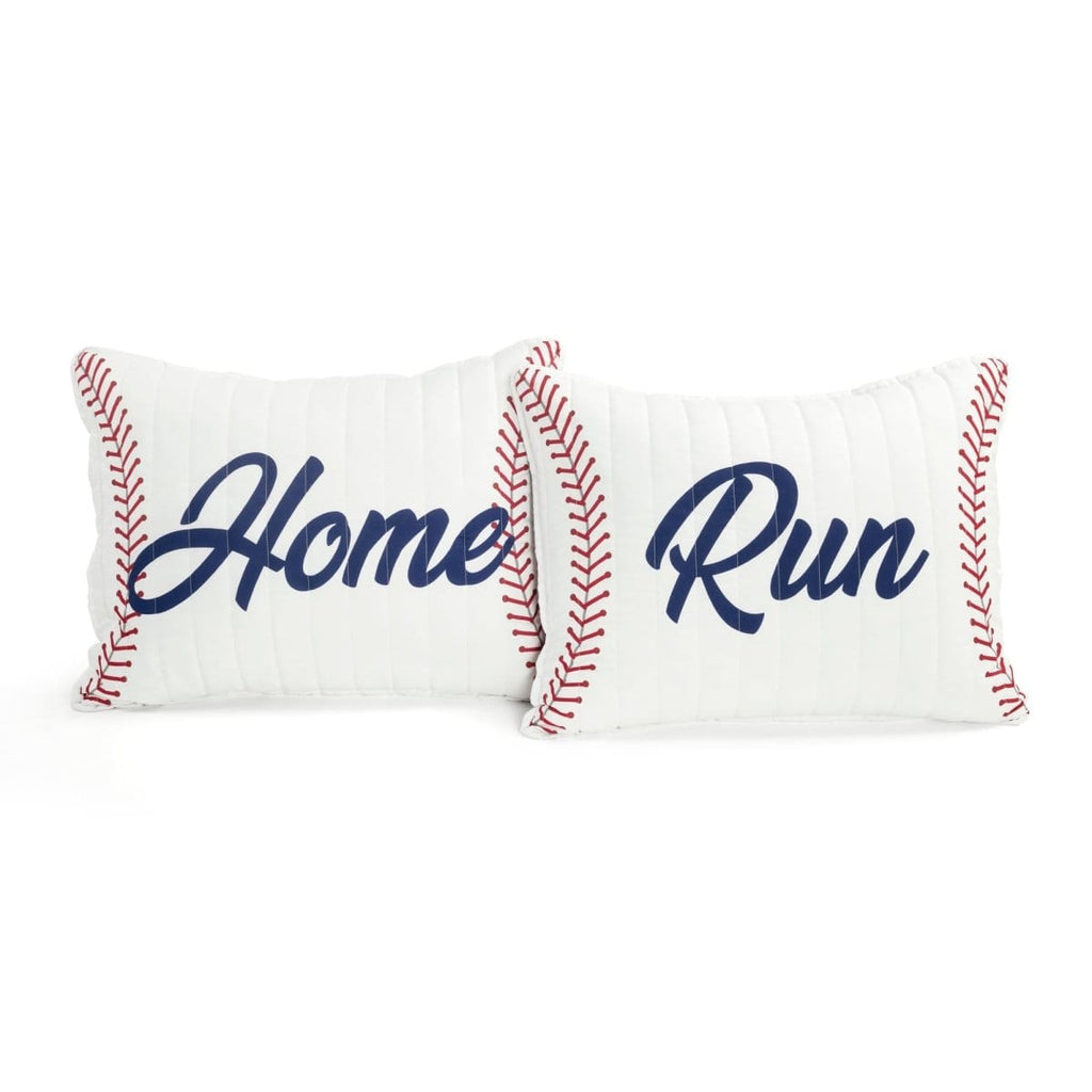 Hit a home run with this fun and sporty Baseball Quilt Set?Çöperfect for your little slugger?ÇÖs bedroom. Designed with bold baseball graphics, this oversized and reversible bedding set adds playful energy to any space while keeping your child cozy year-round. Parents will love the quality craftsmanship and easy care, while kids will love the vibrant design that celebrates their favorite sport. The set includes one quilt, one matching sham, and two decorative throw pillows for a complete, coordinated look.