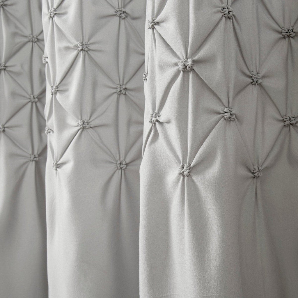 This uniquely stylish shower curtain features pin tucking and elastic embroidery across the top, giving it an elegant beaded look. The embellishments add texture to your bathroom without overdoing it, making this Bayview Shower Curtain perfect for fans of minimalist decor.