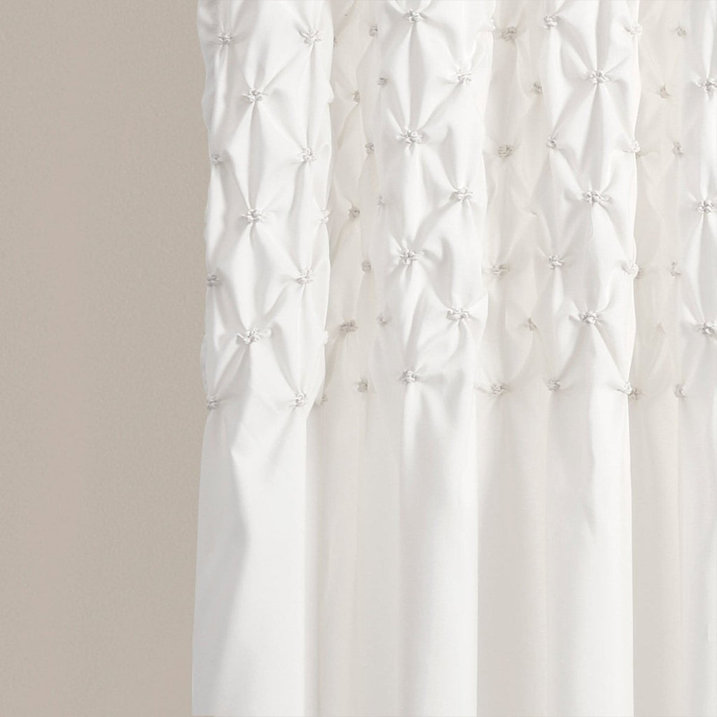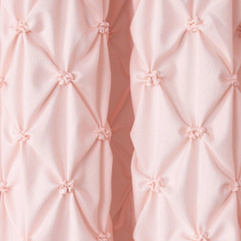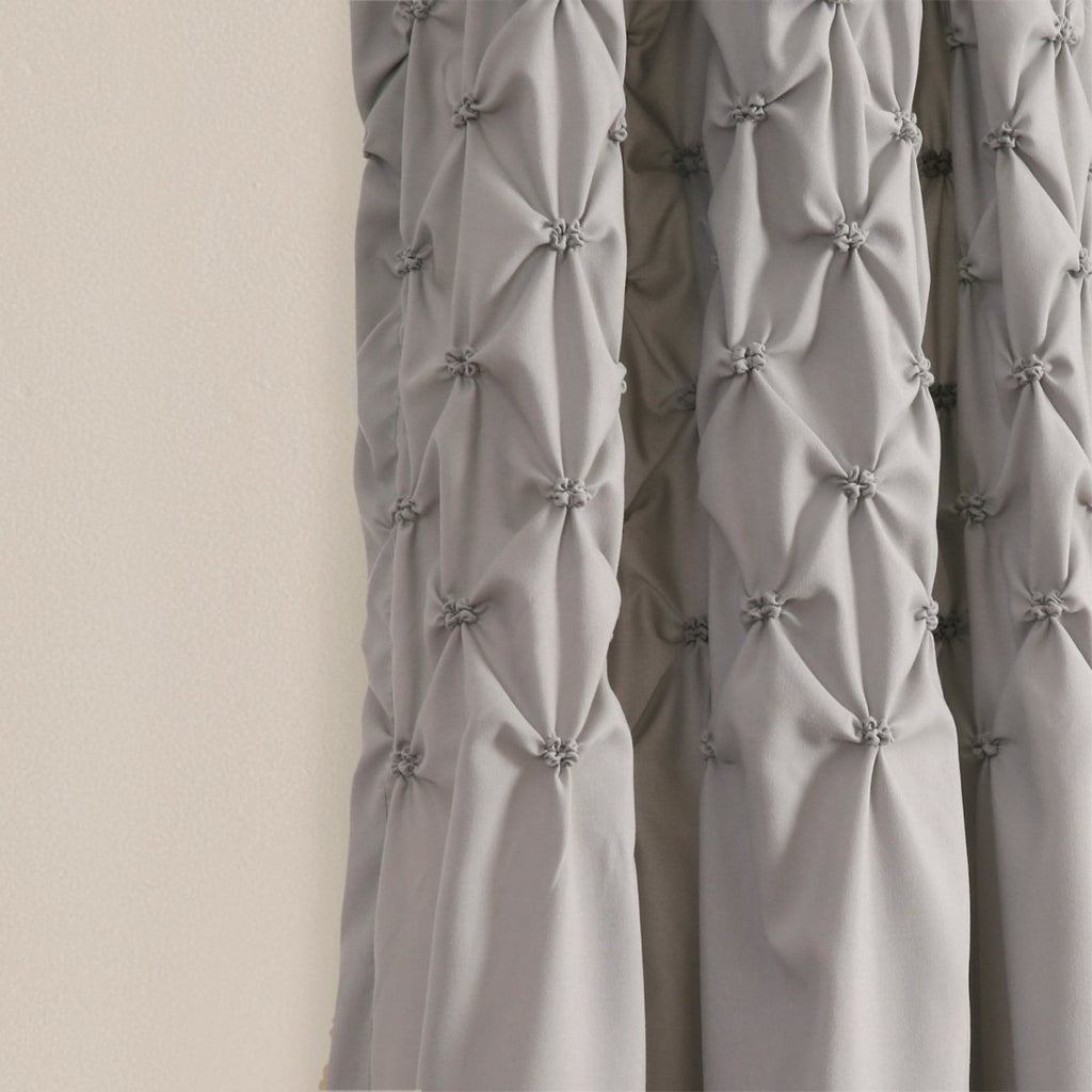 Diamond pin tucking and elastic embroidery across the top give these curtains a beaded look. Neutral hues and flowy fabric give them an elegant look. Its easy to see why this Bayview Window Curtain Set is among our most popular window treatments. These panels instantly take a dull room and turn it into a fabulously stylish space.