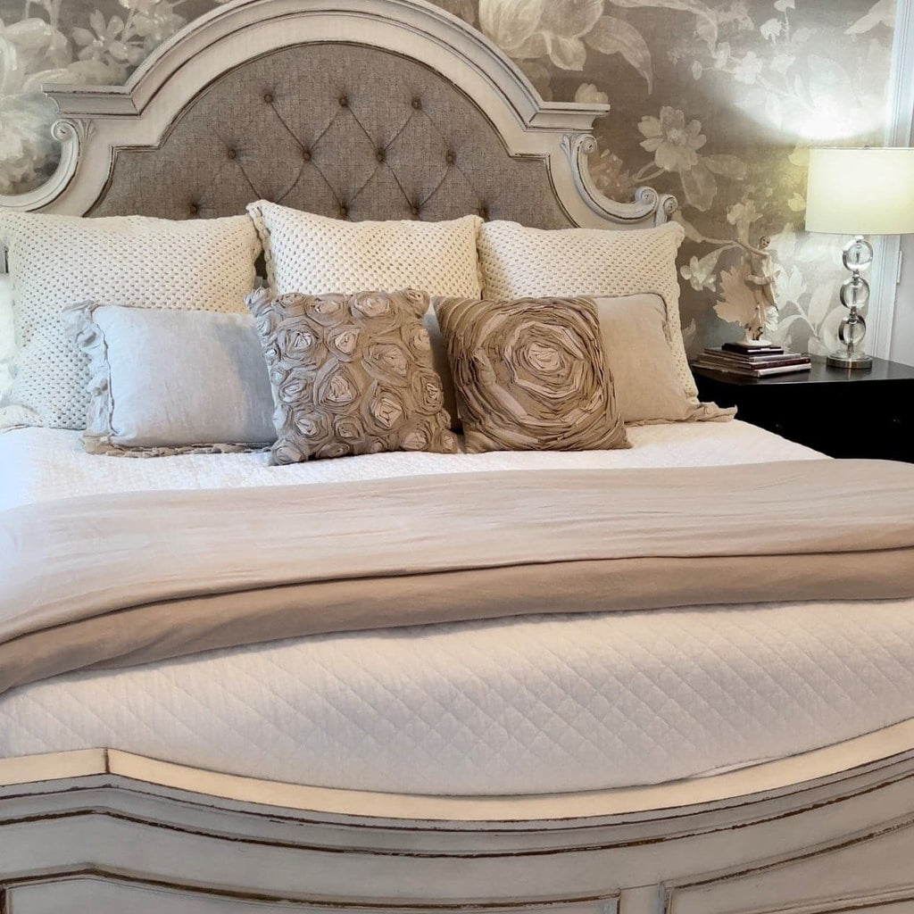 The Belgian Flax Linen Rich Cotton Blend Quilt 3 Piece Set is available in your choice of Full/Queen or King/Cali King sizes. The 3-piece set includes the quilt and two matching pillow shams.