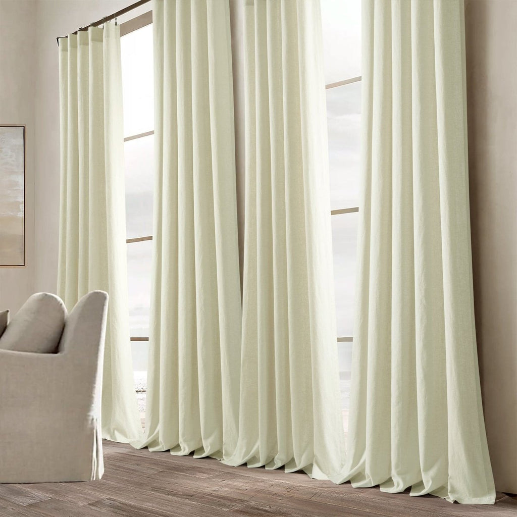 Woven with the perfect blend of cotton and Belgian flax linen, this Belgian Flax Prewashed Linen Rich Cotton Blend Window Curtain Panel introduces subtle texture to your space. This curtain softly filters the sunlight and can be paired with a blackout lining for complete privacy.