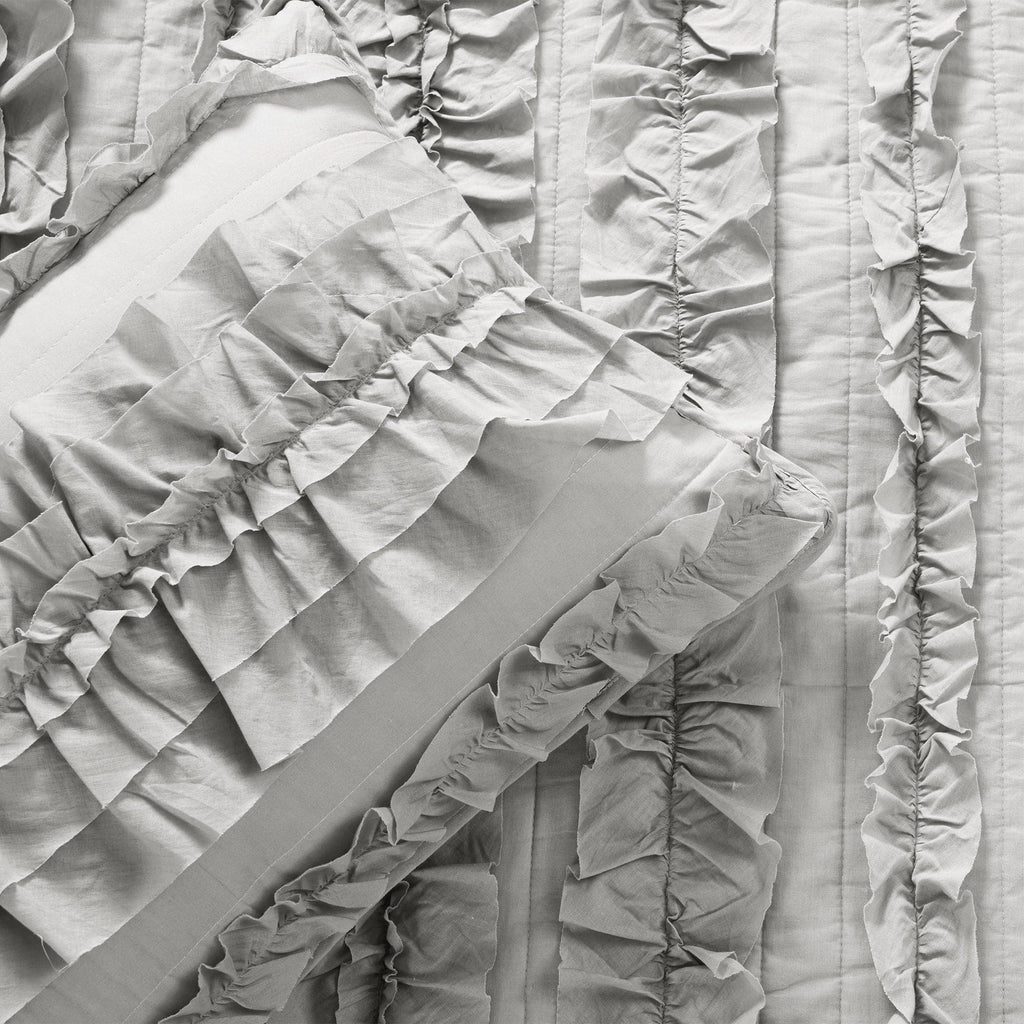 Due to the delicate nature of the ruffled embellishments, this Belle Quilt 3 Piece Set is not safe for machine washing and should be dry cleaned.