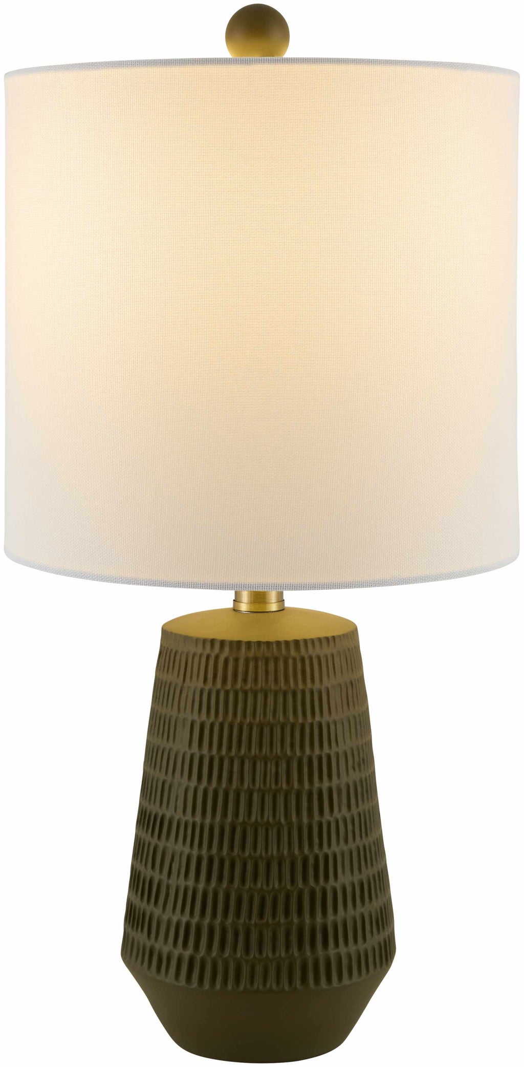Material: Body: Resin / Shade (Outside): Linen / Shade (Inside): Polyester / Finial: Iron |