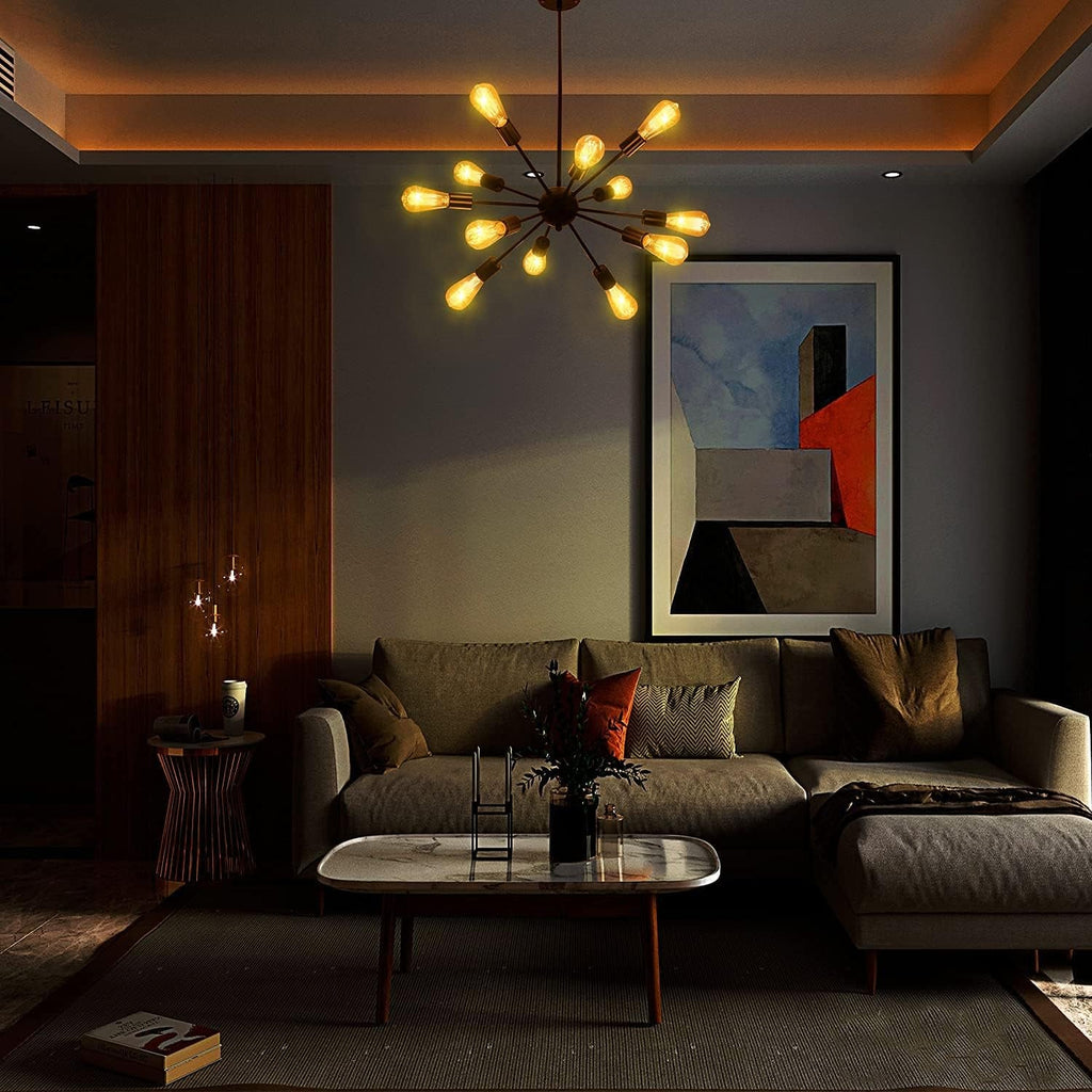 - 12-light Sputnik design delivers dramatic presence and bright, even illumination as a focal point in your space.