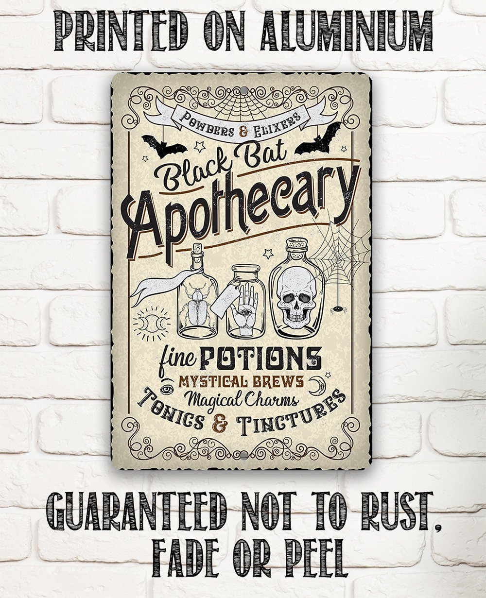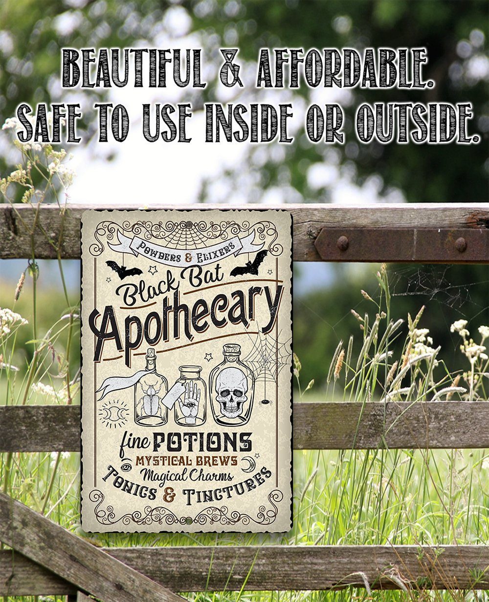 Metal Sign - Black Bat Apothecary - Durable Metal Sign - 8" x 12" or 12" x 18" Use Indoor/Outdoor - Great Halloween Witch Decoration and Gift