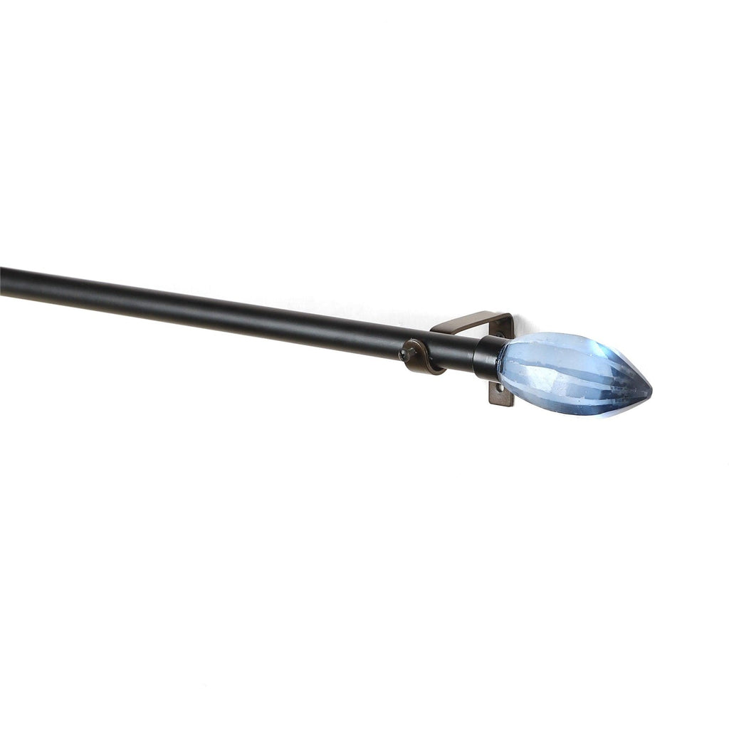 Add a Touch of Sophistication with this Black Extendable Curtain Pole - Featuring Elegant Blue Glass Finials