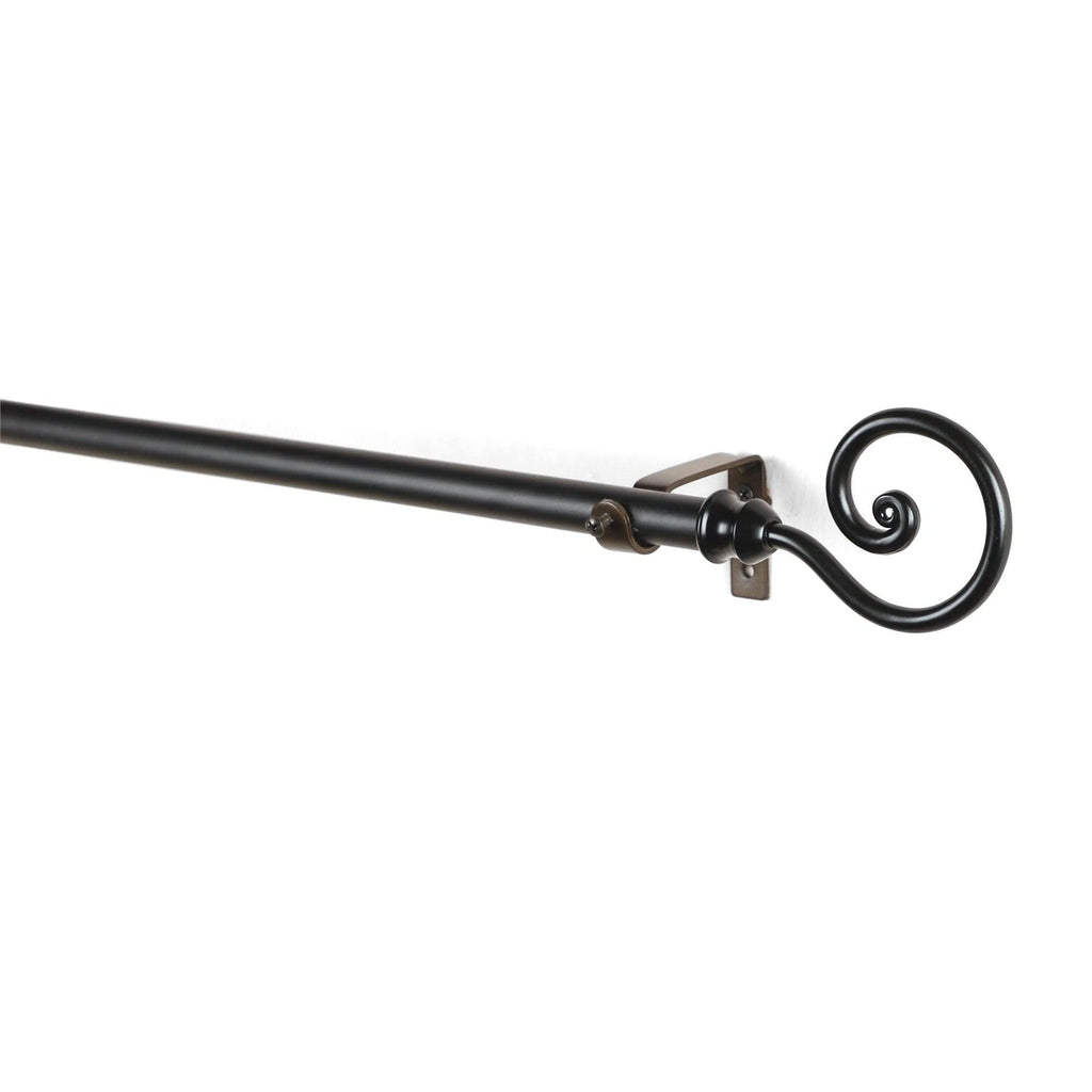 Add a Touch of Whimsy with this Black Extendable Curtain Pole - Featuring Unique Curled Metal Finials