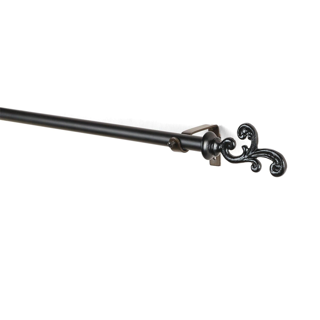 Embrace Traditional Elegance with this Black Extendable Curtain Pole - Featuring Ornate Metal Finials