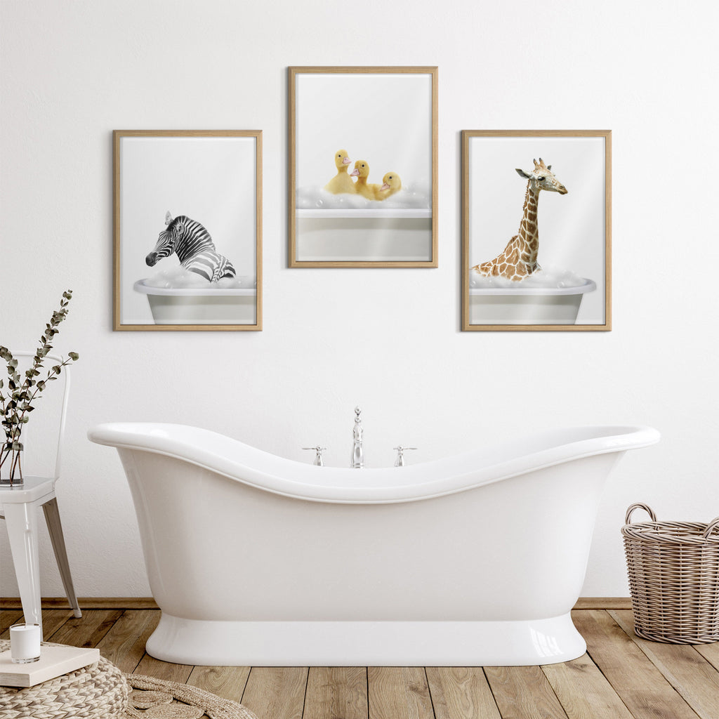 Bring fun to bathtime with this animal in a soapy tub art print. Printed and framed in the USA in Waunakee, Wisconsin, this framed glass art will be a pleasure to look at every day in your living room, bedroom, office, or any room in the home. This art print also makes an excellent gift for birthdays, holidays, or house-warming parties. Printed on glass and framed with a lightweight polystyrene frame, this wall art has two hangers already attached to the back for easy wall display.