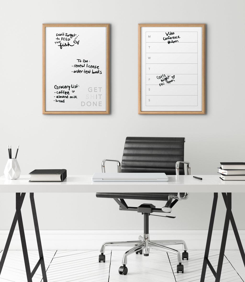 Motivate yourself to get your work done with this decorative dry-erase board. Printed and framed in the USA in Waunakee, Wisconsin, this framed floating glass art will be a pleasure to look at every day in your living room, bedroom, nursery, or any room in the home. It even doubles as a beautiful dry erase board! Traditional dry erase boards stain over time and become worn within a few uses, while you can use a glass dry-erase board over and over without wearing out. Just wipe clean with an eraser or damp cloth. This art print also makes an excellent gift for a birthday, holiday, or house-warming. Printed on glass and framed with a lightweight polystyrene frame, this colorful art has two hangers already attached for easy wall display.