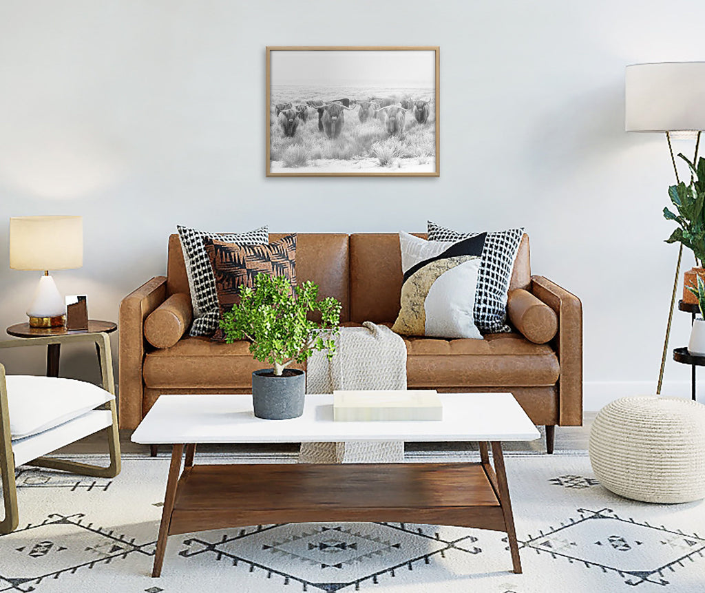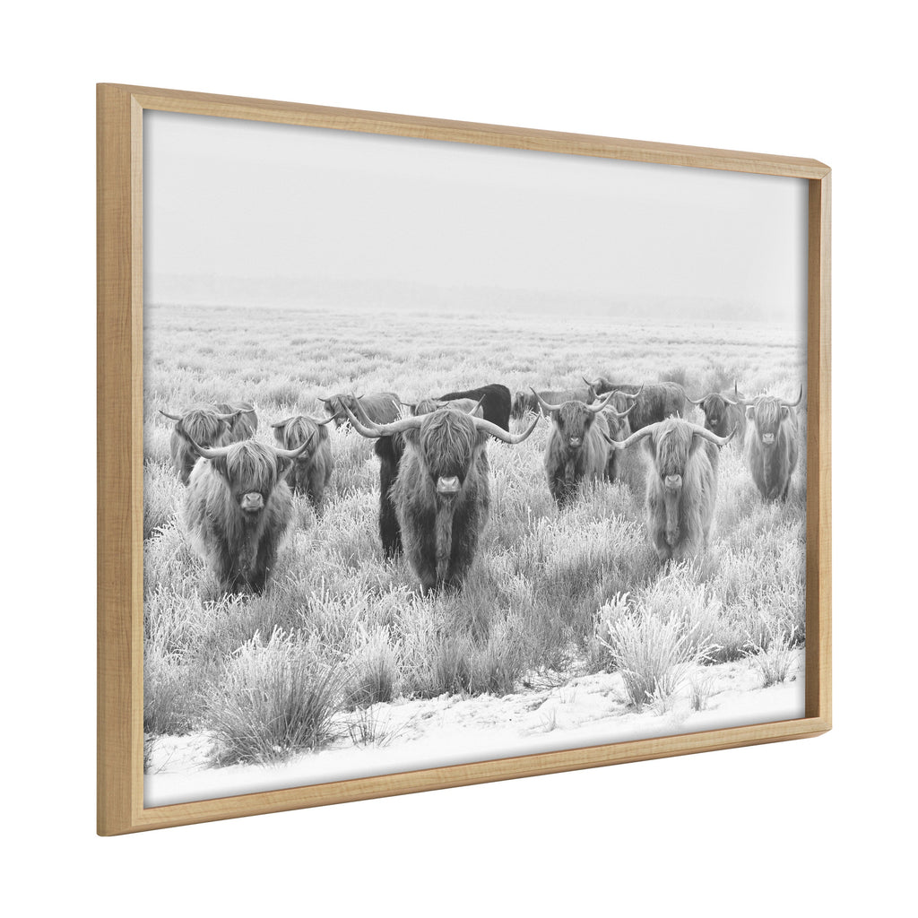 This lovely herd of highland cows portrait print is a fantastic way to introduce some rustic character to your home. Printed and framed in the USA in Waunakee, Wisconsin, this framed art will be a pleasure to look at every day in your living room, bedroom, office, or any room in the home. This art print also makes an excellent gift for birthdays, holidays, or house-warming parties. Printed on a premium solid surface and framed with a lightweight polystyrene frame, this wall art is easy to display on the wall.
