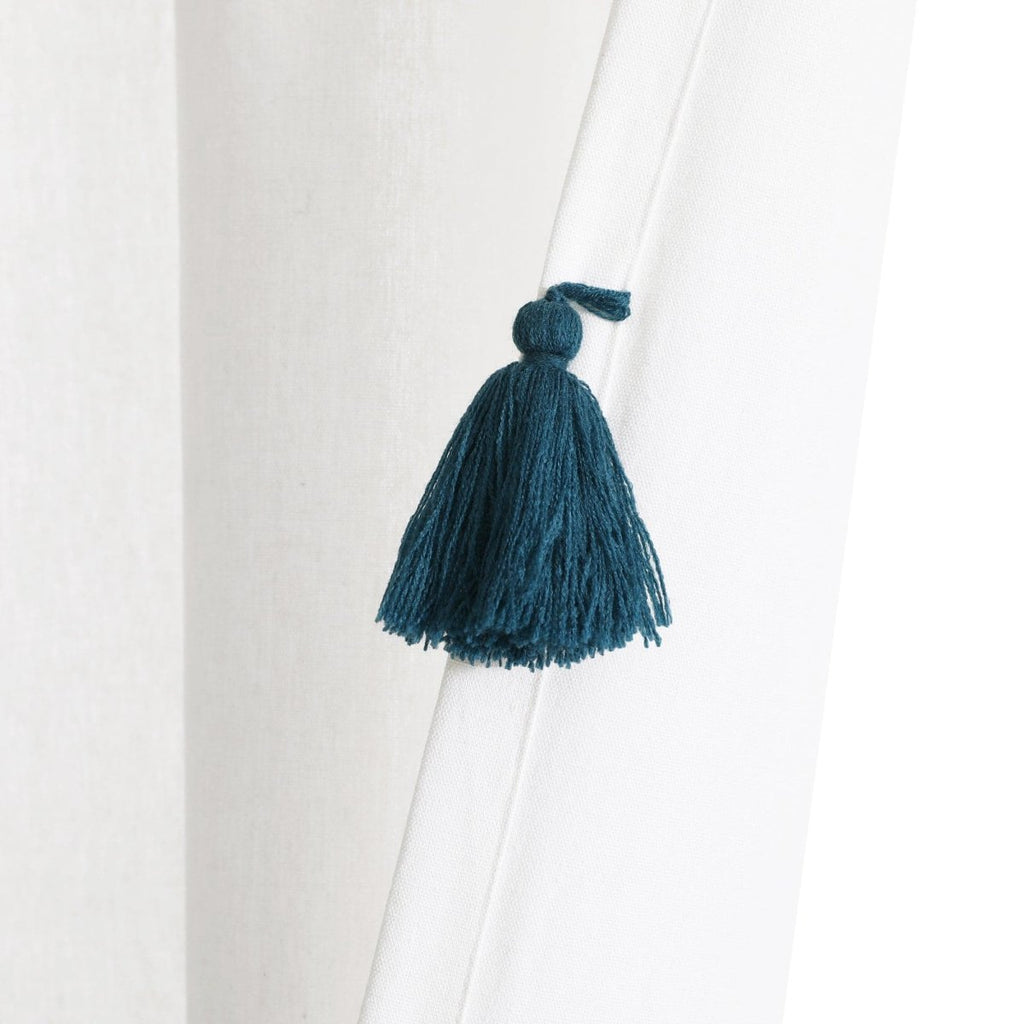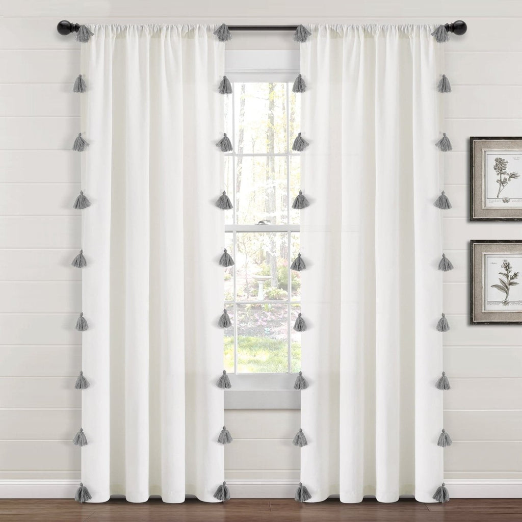 The Boho Faux Linen Texture Tassel Window Curtain Panel is sold by the single panel so you only have to purchase what you need. This is ideal if you need an odd number of panels in your space or if you only need to replace a single panel. Each panel measures 84 inches long and 52 inches wide. This panel is off-white and available with your choice of 5 tassel colors.