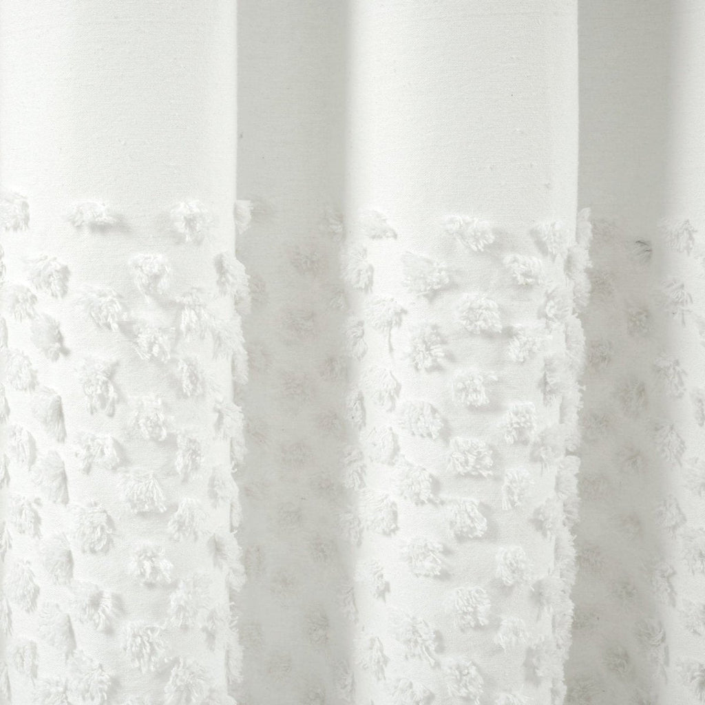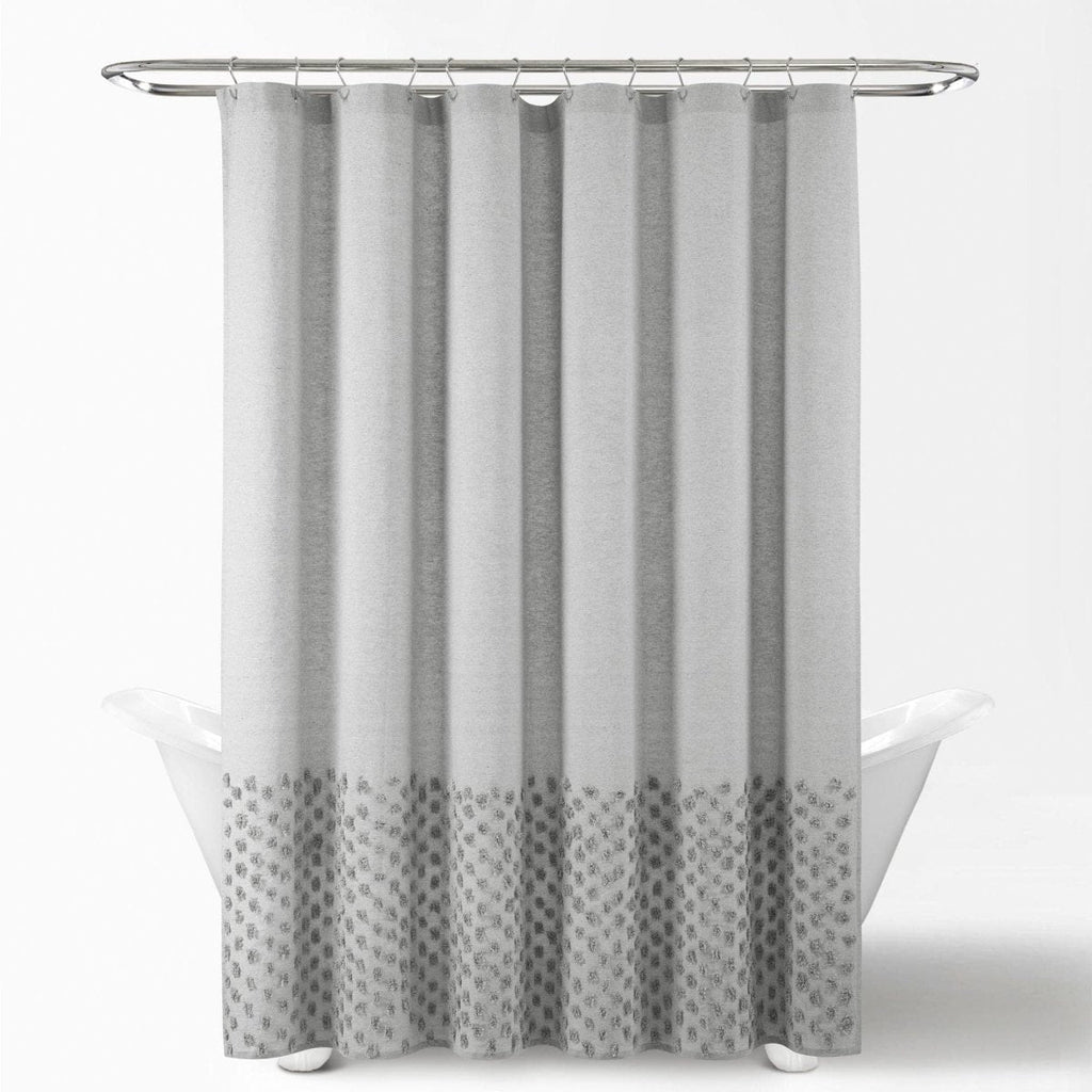 The oversized polka dot border brings texture to your bathroom design. With its yarn dyed solid colors, this Boho Polka Dot Yarn Dyed Recycled Cotton Shower Curtain is easy to style and coordinate for a finished look.