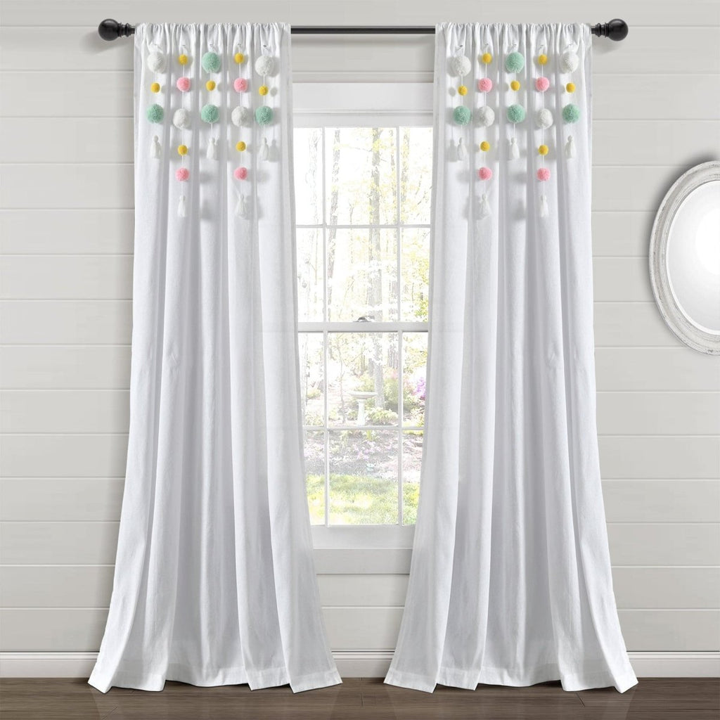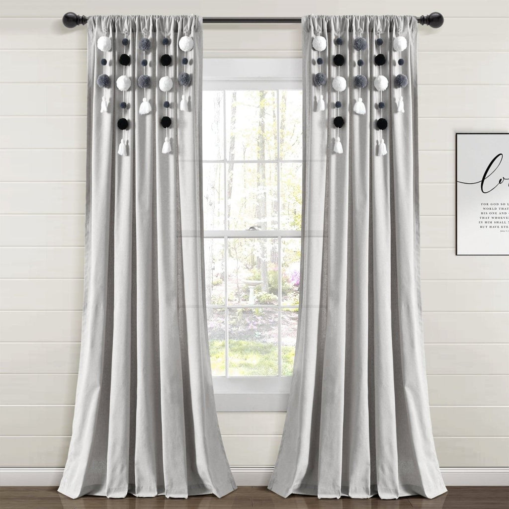 This whimsical Boho Pom Pom Tassel Faux Linen Window Curtain Panel can work in so many design themes, from boho, to Hollywood glitz and glam, and so much more. Use these panels in a bedroom, living room, nursery or home office. This style is currently available in ten color options to easily match your existing decor.