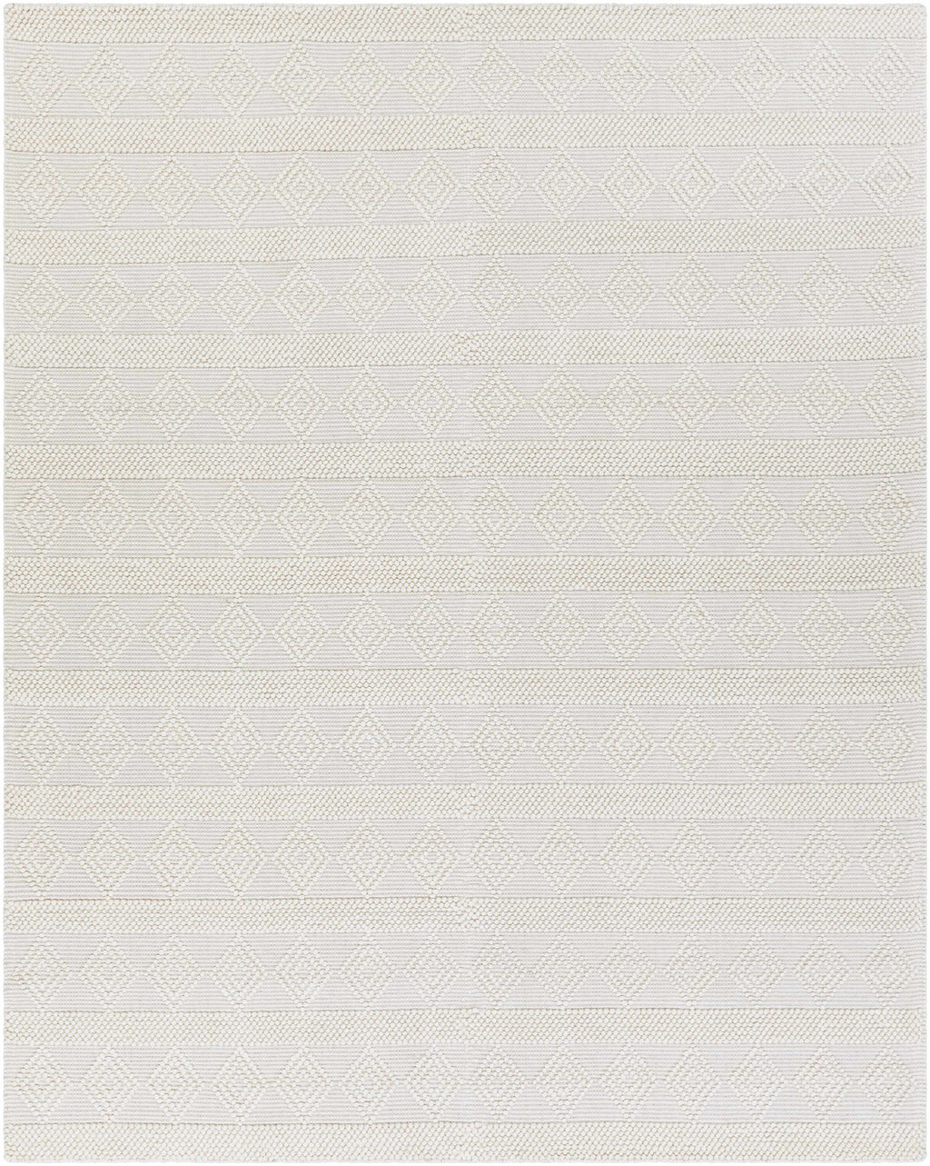 About: The Bolinger Area Rug is a handwoven masterpiece crafted from 100% wool, featuring a timeless diamond pattern in an elegant ivory tone. Durable and solid, this rug is an excellent addition to farmhouse and Scandinavian-style homes, bringing warmth and texture to your space. Its premium wool construction ensures longevity and comfort, making it a perfect choice for high-traffic areas or cozy living spaces. Add a touch of refined simplicity and natural charm to your home with this stunning piece.