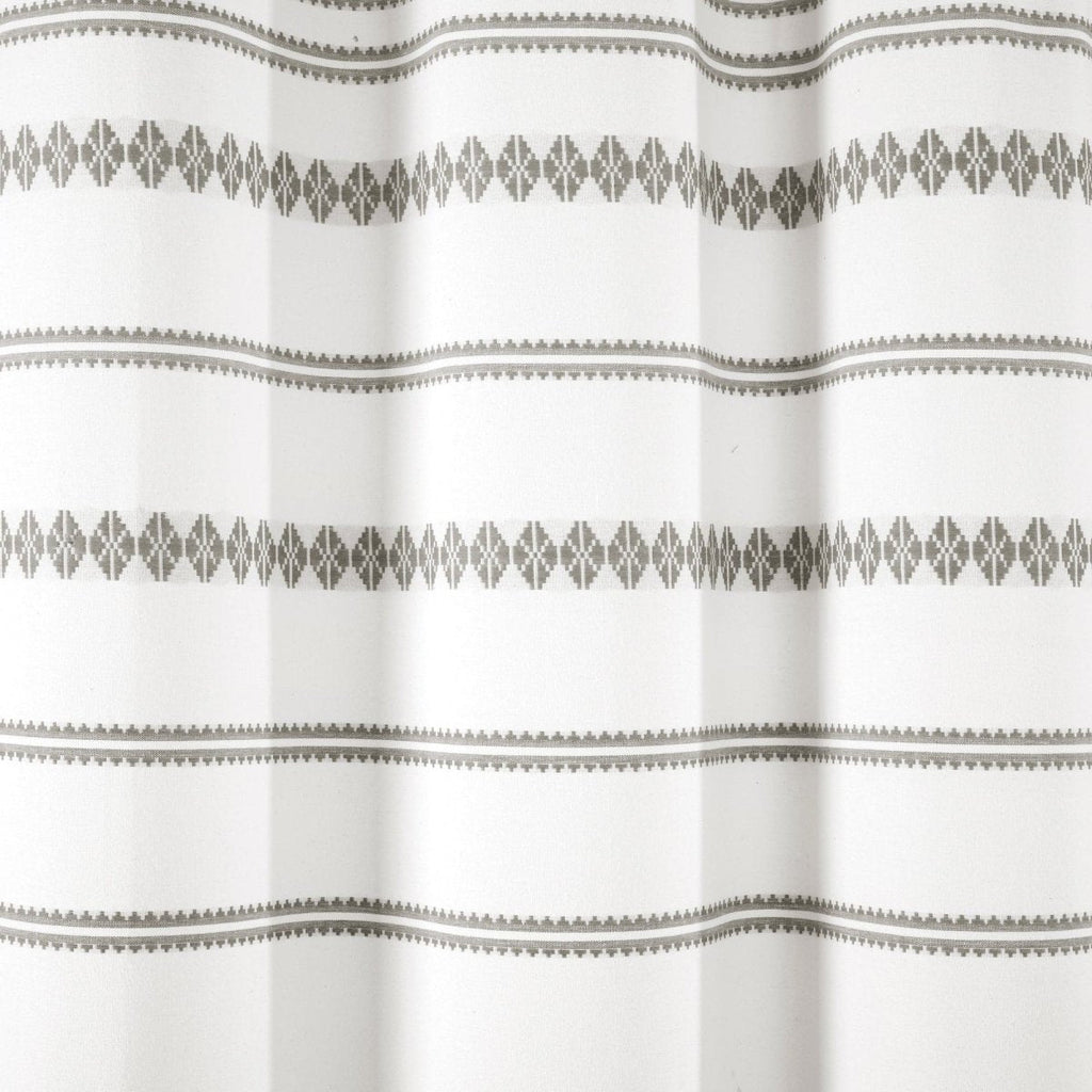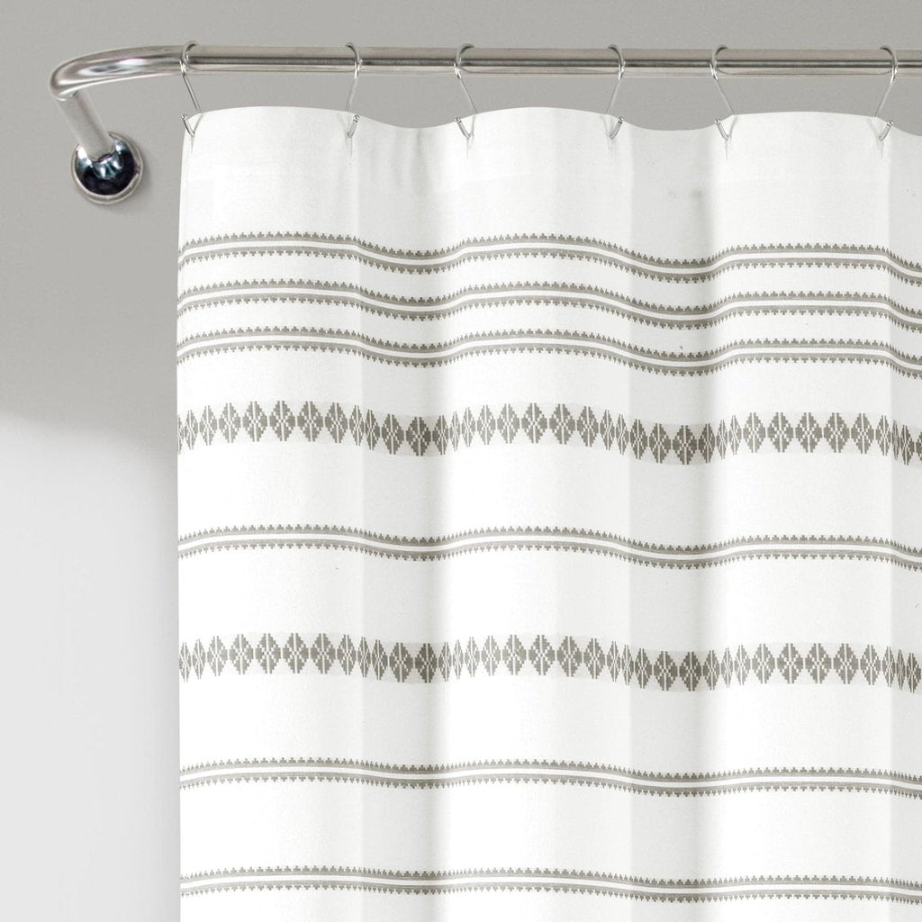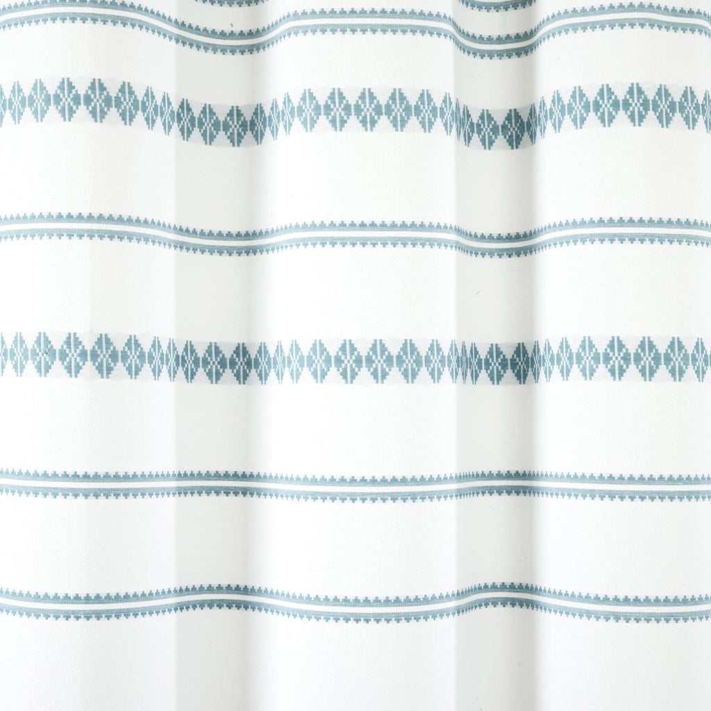Add this chic Aztec inspired shower curtain to your primary, guest, or teen's bathroom. This Breezy Chic Tassel Jacquard Recycled Cotton Shower Curtain has a white base with an intricate woven jacquard pattern that displays different geometric stripes accented with matching colored tassels at the bottom.