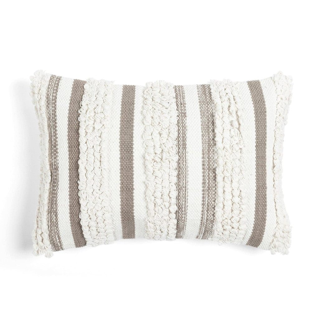 The modern look of this rectangular pillow cover is a sight to behold. The stripes of varying colors and textured style give it a unique contemporary look, while cotton fabric makes it soft to the touch. This Bria Stripe Decorative Pillow Cover makes a lovely accent piece to a bed, sofa or chair.