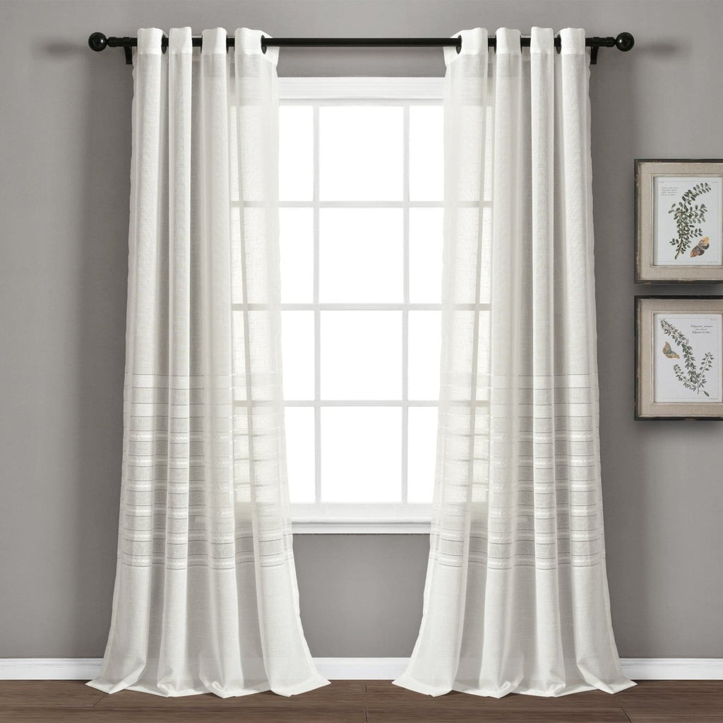The simple stripe pattern embroidered on the lower section of this Bridie Grommet Sheer Window Curtain Panel Set easily fits into many decor themes, such as modern, contemporary, coastal, farmhouse and more.