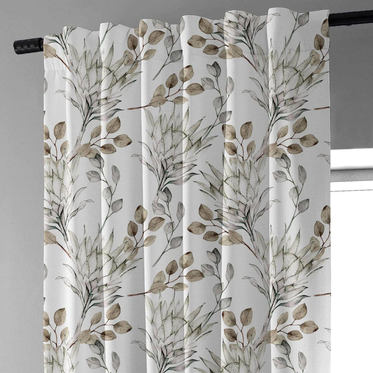 - Back Tab Curtains (Hidden Tabs): For a sophisticated and tailored drape, choose back tab curtains. Concealed tabs on the reverse create deep, elegant folds that hang beautifully and showcase the watercolor leaf and flower design uninterrupted. A stylish option for dining rooms or more formal reception rooms.