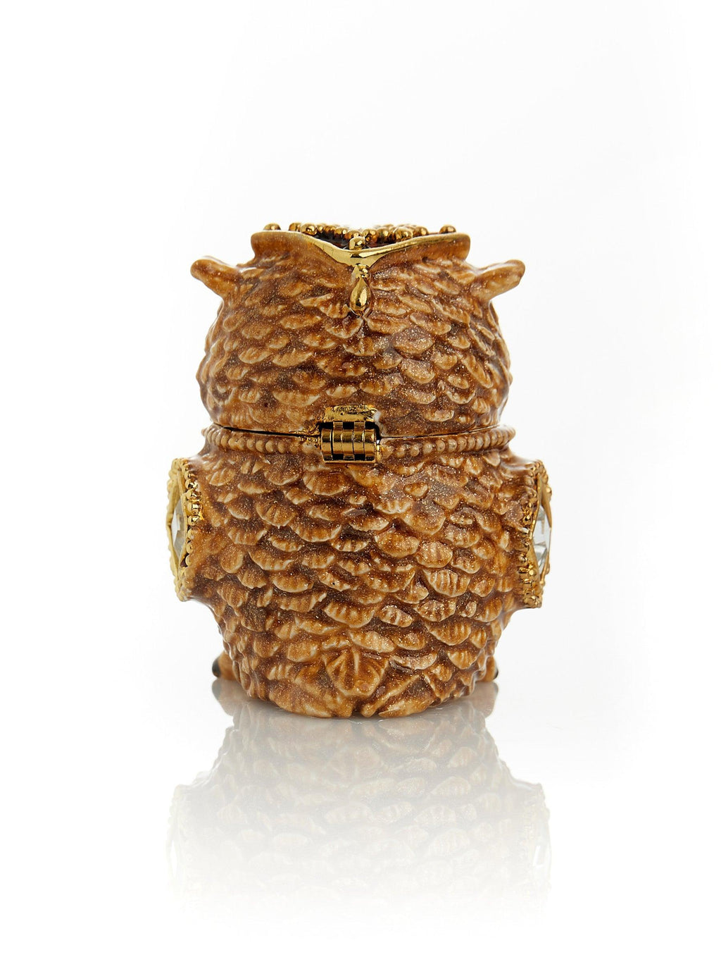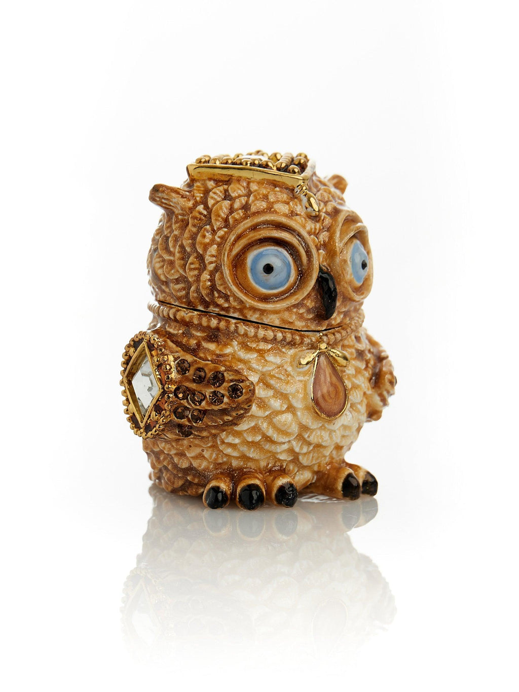 This item is part of the Owls Trinket Box Series and part of The Keren Kopal collection, intricately handcrafted and enameled trinket boxes featuring owls in various poses and styles. These boxes are inspired by the renowned Fabergé eggs and jewelry, showcasing the artist's meticulous attention to detail and artistry.