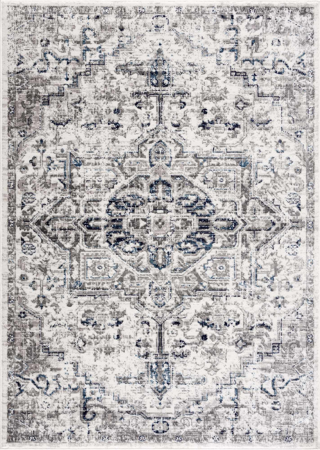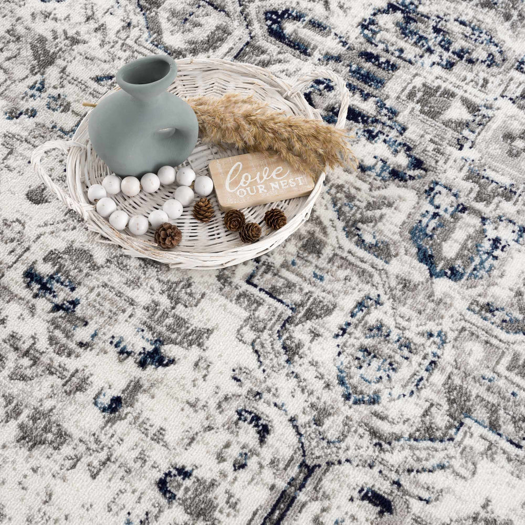 About: The Buenaventura Cream Navy Area Rug features a timeless medallion design in traditional style, bringing a touch of elegance to any room. The rug's durable construction ensures it stands up to high traffic, making it suitable for living rooms, hallways, and entryways. With its beautiful blend of gray, white, and navy tones, this rug adds a sophisticated color palette to your space. Available in both area rug and runner options, the Buenaventura rug is perfect for adding both function and style to your home decor.